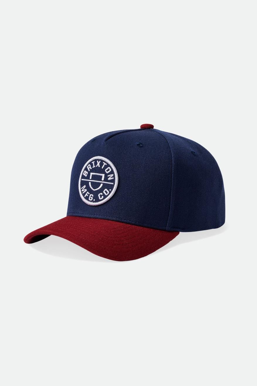 The Crest MP is a structured 5-panel snapback with a lightly curved brim. It features a Bureo NetPlus® visor made from recycled fishing nets and is finished with an embroidered Brixton patch.