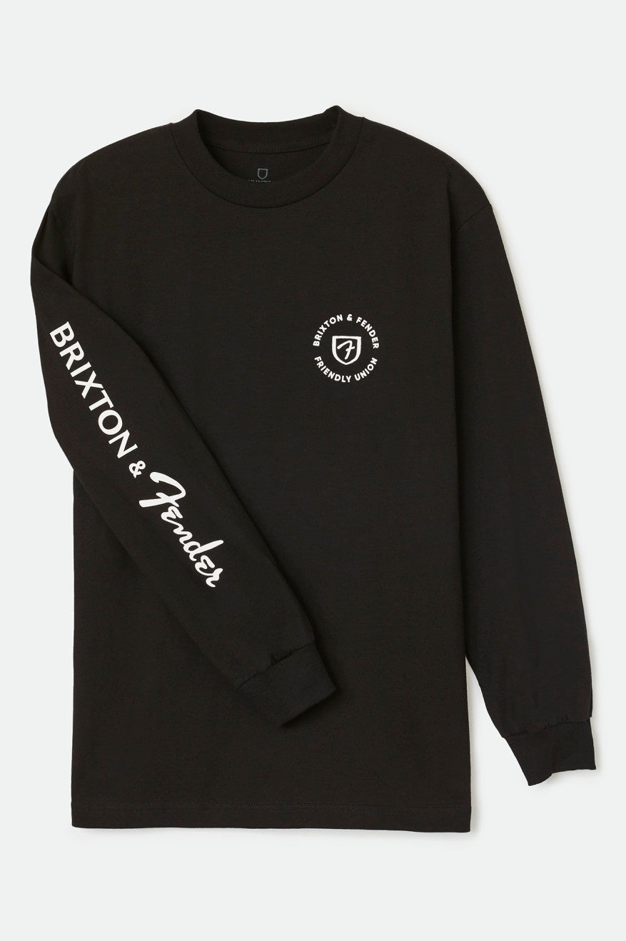 Built in 100% cotton and featuring a standard fit and long sleeves, the Fender Highway L/S Standard Tee is an easy go-to. Featuring a small Brixton and Fender logo at left chest, a larger one across the right sleeve, and a more prominent one at center back. An iconic tee to be well-loved for years.