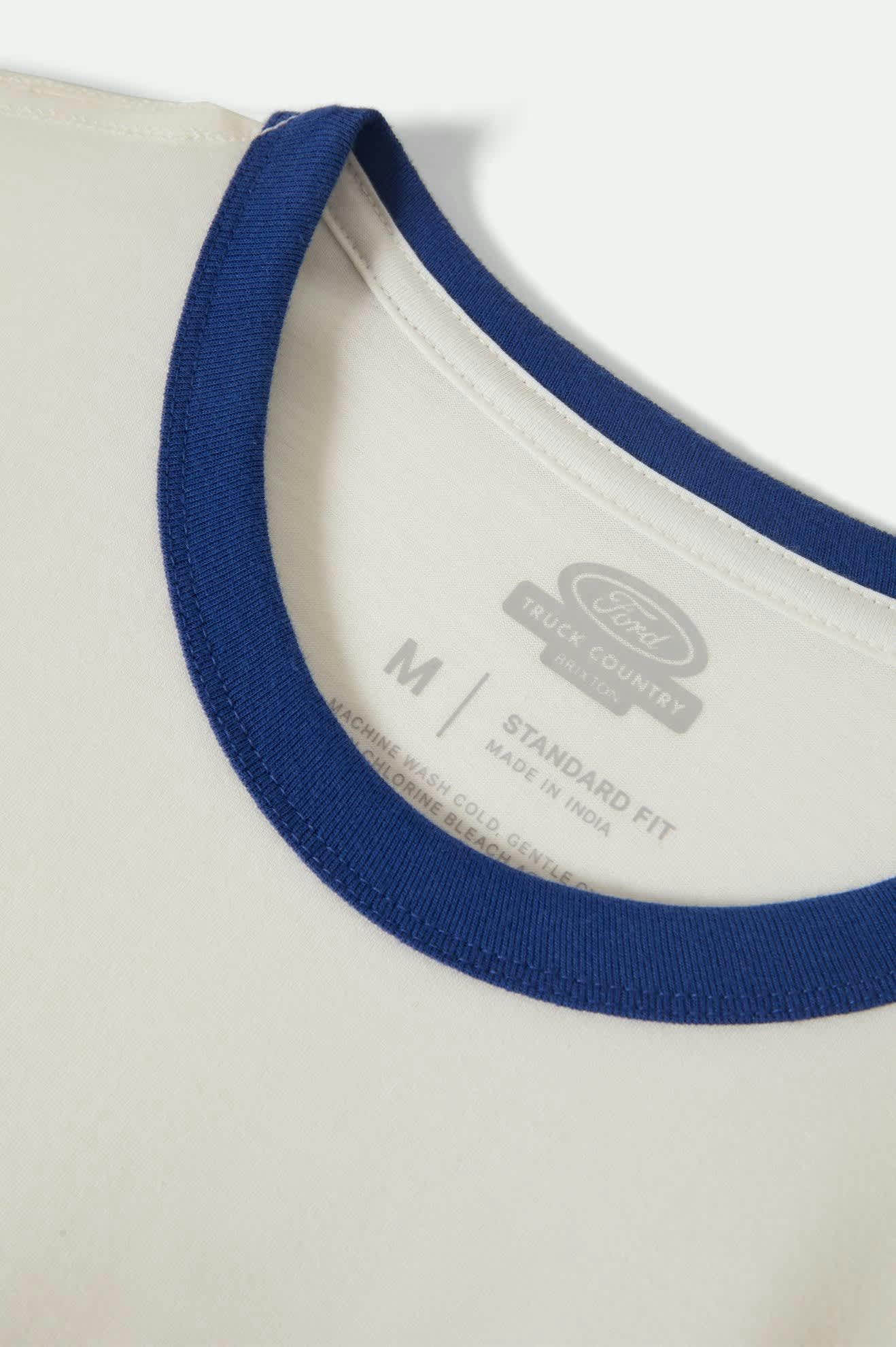 Celebrate bold, rugged style with the Ford King Of The Mountains Short Sleeve Ringer. Featuring distressed artwork of a 4x4 truck design, this ringer tee channels a vintage-inspired aesthetic with a modern twist. The cotton-polyester blend ensures all-day comfort and breathability, while contrasting Ford blue trim on the neck and sleeves pops with retro flair.