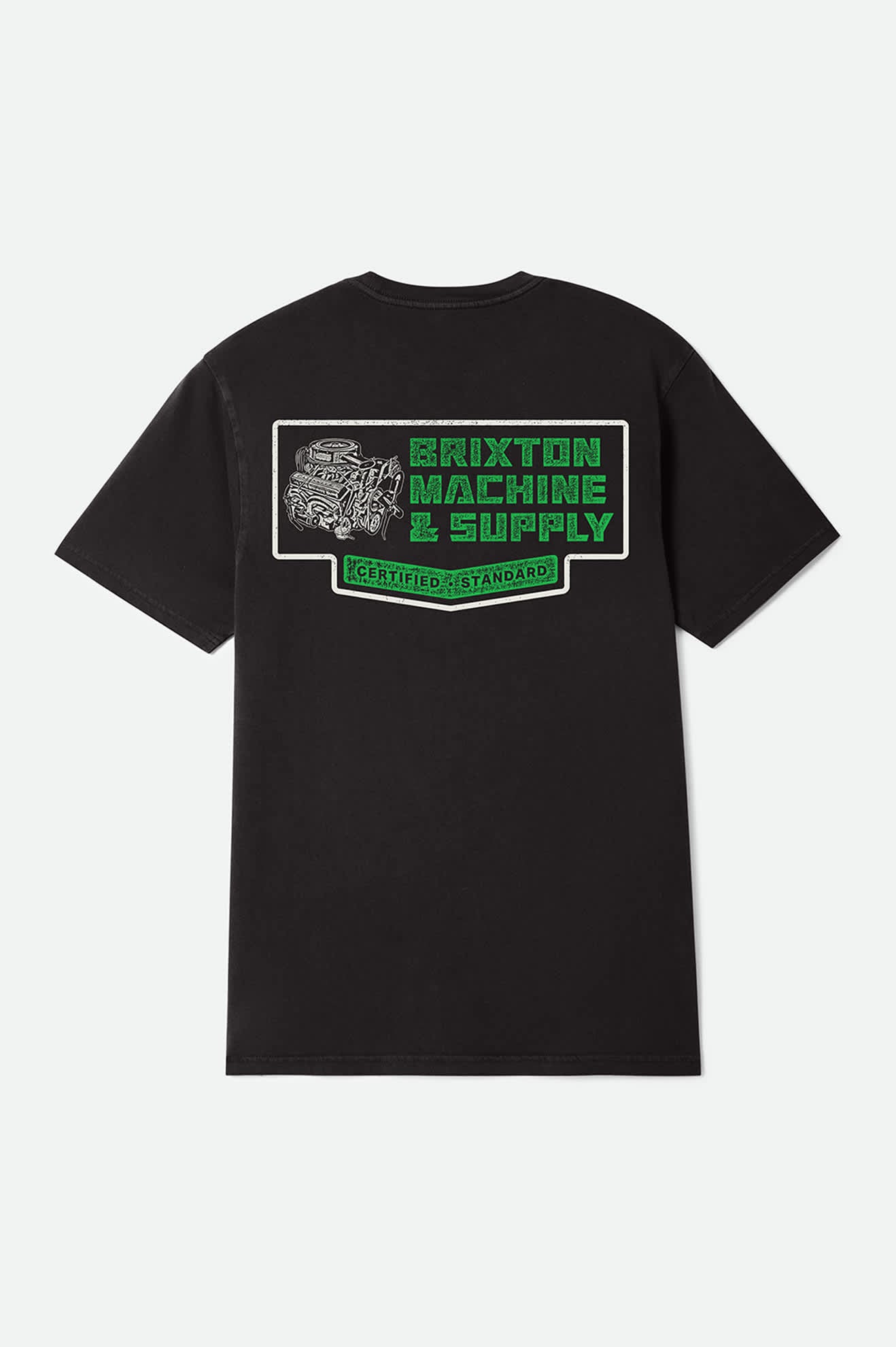 Built with garage-inspired grit. The Machine Short Sleeve T-Shirt features a standard fit and is made from 100% cotton with a worn wash for a soft, lived-in feel. The back graphic highlights Brixton Machine & Supply with vintage mechanical detailing, giving it a rugged, workwear-inspired look. Comfortable, durable, and easy to wear, it’s a dependable tee designed for everyday rotation.