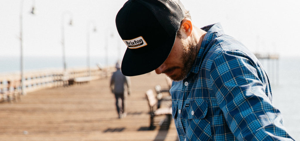 Clean-cut, casual designs. Brixton branded gear with prints and embroideries.