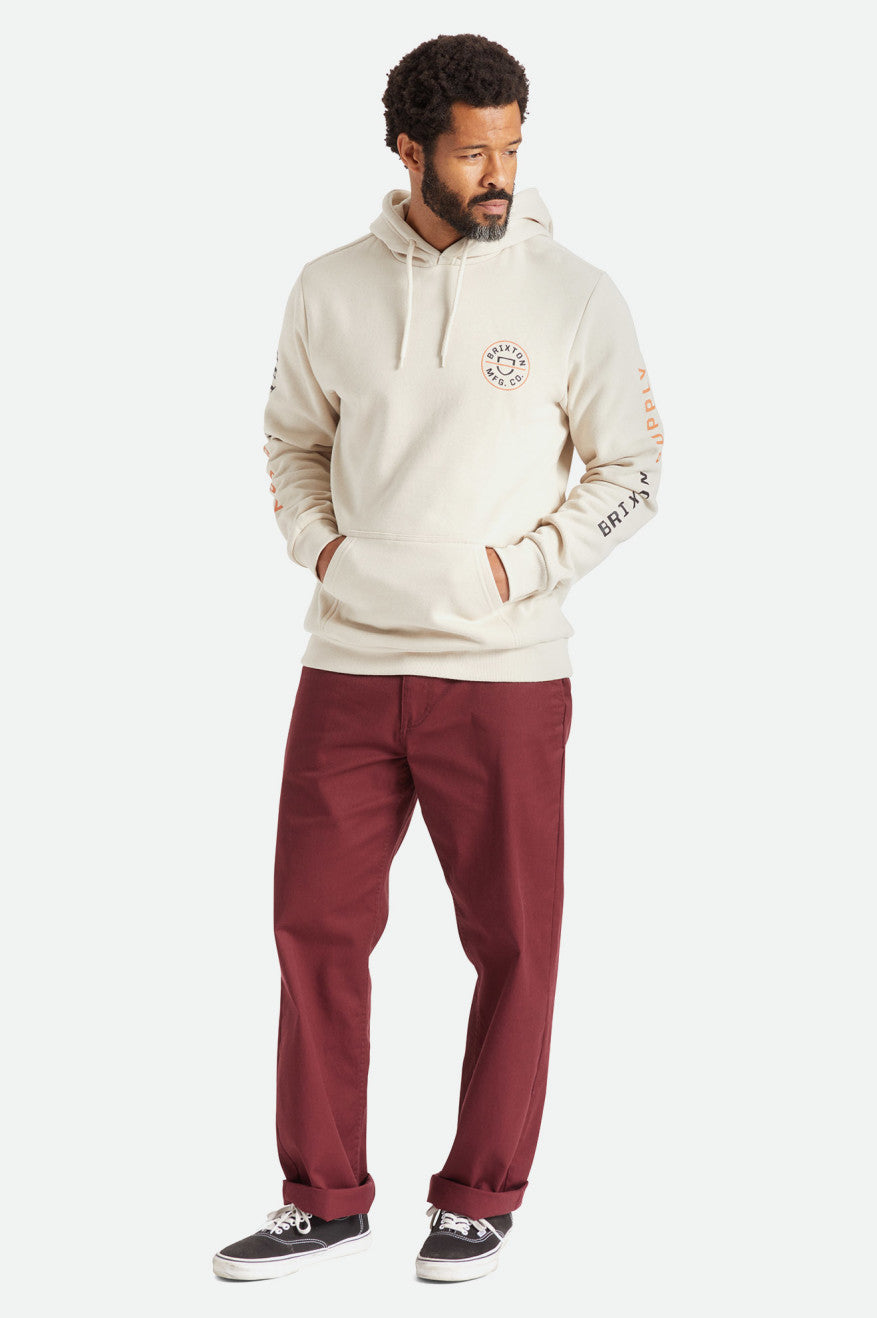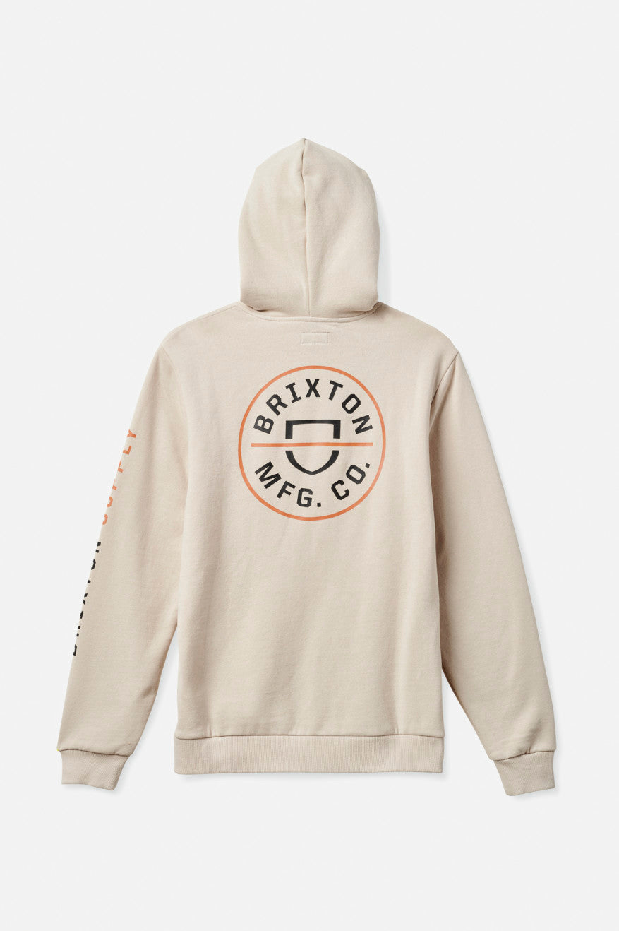 The Crest Hood is a pullover sweater with iconic Brixton branding. It has a relaxed hood with drawcord adjusters and inset sleeves for mobility. Ideal for days off, days on and everyday in between.