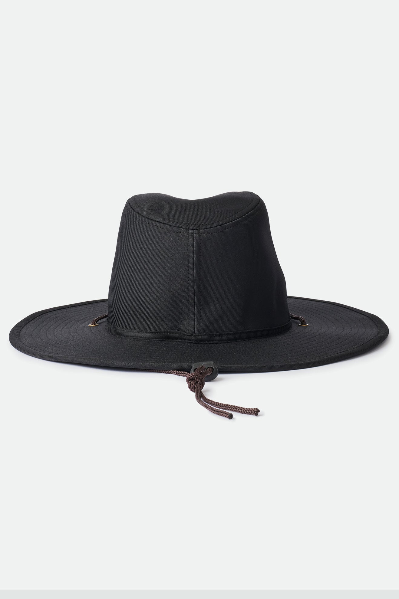 The Field Crossover Hat is a wide brim, polyester twill hat featuring recycled materials and water repellent coating which makes it a great choice, no matter the season. Featuring a nylon band and neck rope, it's finished off with a metal hardware plaque that gives it an elevated look. The adjustable Velcro strap under the sweatband makes it easy to find your perfect size. If you're not sure which to choose, we suggest you size up and use the hidden adjuster to perfectly tailor the fit.