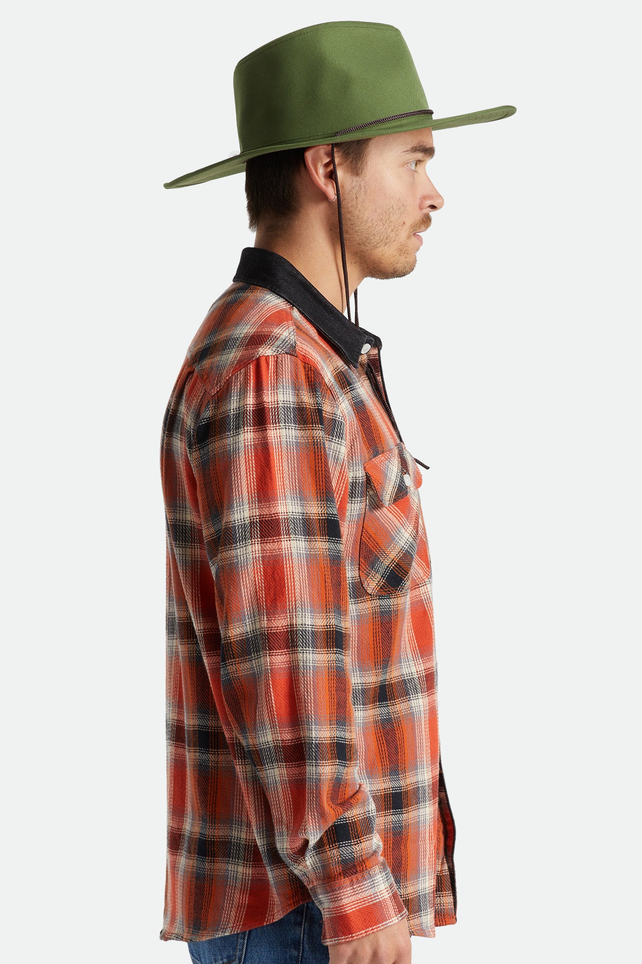 A go-to hat for every season. Rain, snow, or sun, the Field Crossover hat is a great choice no matter the weather. This polyester twill hat has a wide brim, water-repellent coating, an antimicrobial moisture-wicking sweatband, an adjustable velcro strap under the sweatband, finished off with a metal hardware plaque, for that elevated look. With so many features, you’ll never want to take it off.