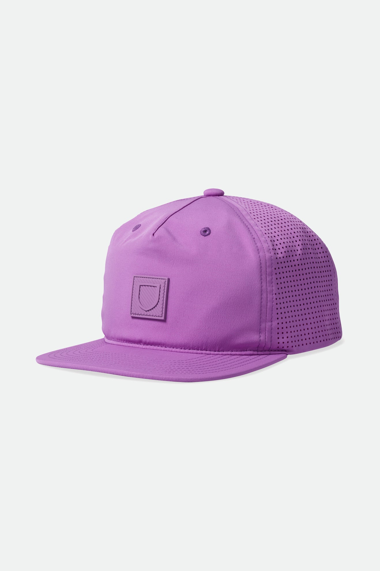The Beta Square Crossover Cap is an unstructured 5-panel with a flat brim. Laser-cut mesh panels and a sweat-wicking inner band keep your head cool and comfy. Made with a water-resistant poly blend, this piece combines protection from the elements with casual design.