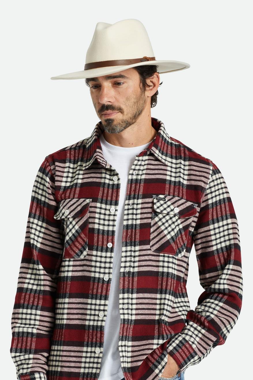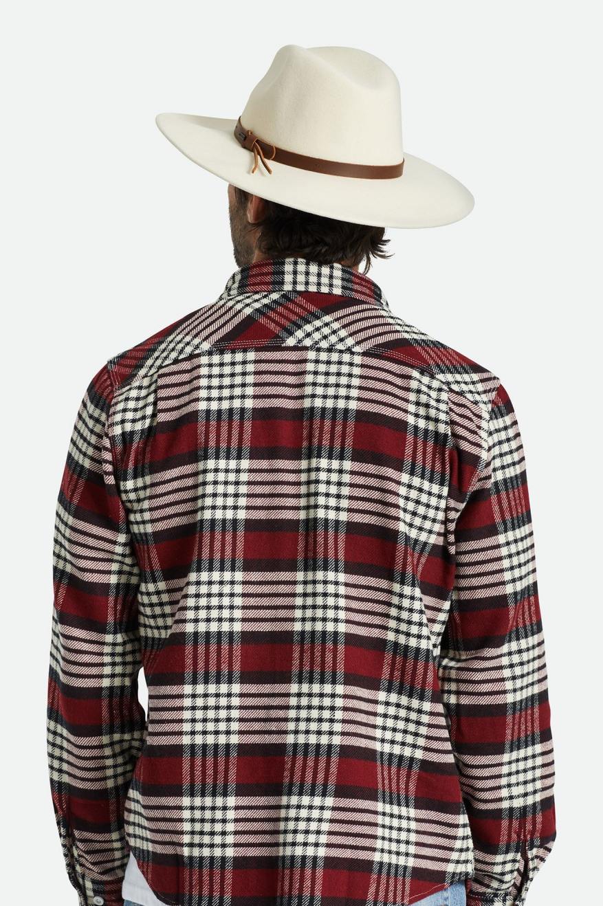 The Field Proper is a refined flat-brim hat with a strong center crease. Designed with Australian wool and accented with a genuine leather strap with tails. Customize your fit with the adjustable Velcro strap under the inner sweatband and wear this one everywhere.