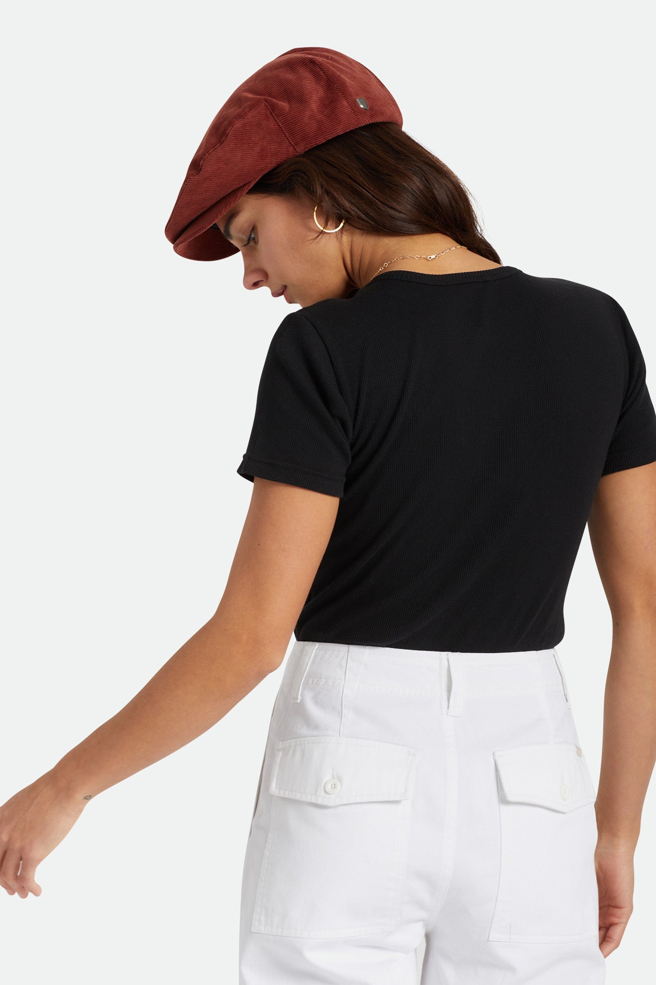 A simple staple, the Samantha Baby Tee is a great layering favorite that features a self neck binding, and an understated flag label at the side seam. Wear it under your favorite seasonal layers, or on its own when the sun is shining brightly.