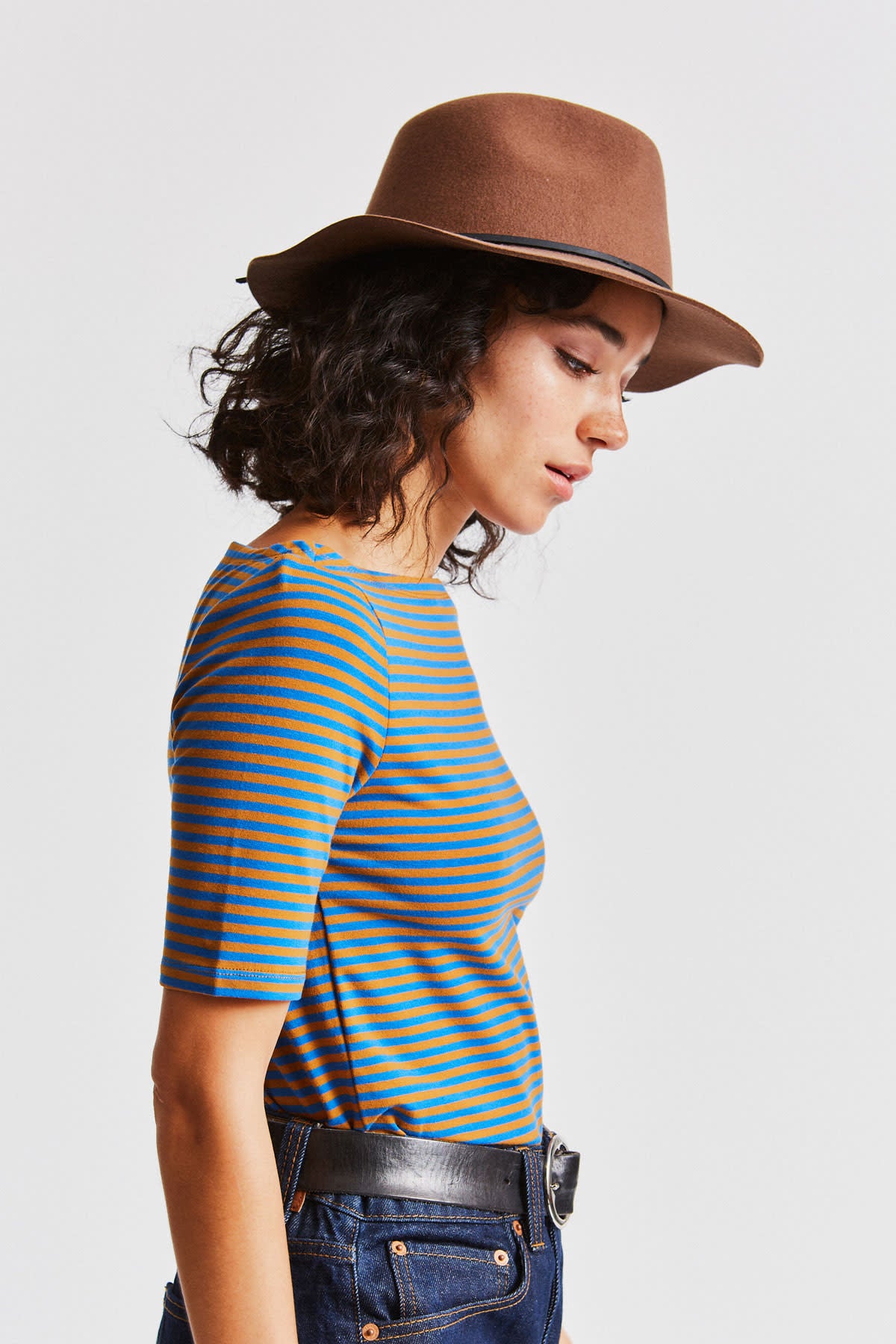 A unisex classic medium-brim felt fedora finished with a genuine leather band. Soft felt gives the Wesley's crown and brim a relaxed feel that is comfortable and can be adjusted to fit perfectly. A timeless closet staple for year-round style. Color: Bison/Black