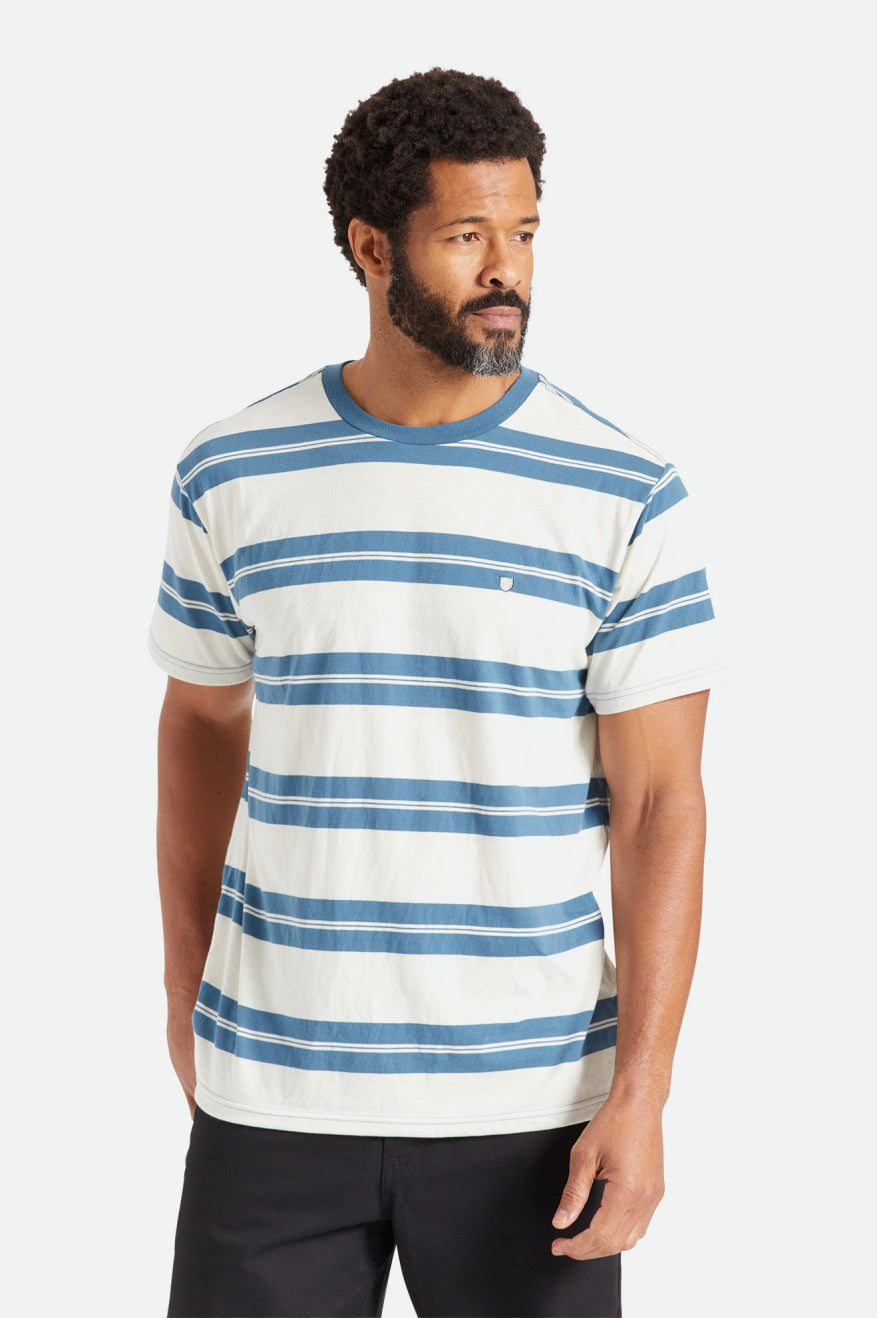 Simultaneously modern and vintage, this crewneck tee features horizontal stripes and a subtle Brixton shield. Crafted with a soft cotton poly blend and custom yarn-dye knit.
