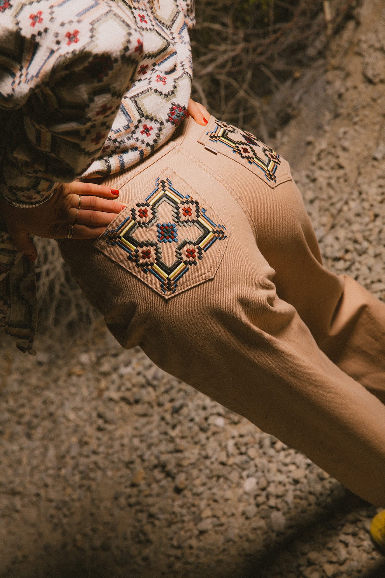 Classic meets creative in these statement-making pants. The Chloe Pant is made with 100% cotton with a lived-in wash that feels perfectly broken-in. Traditional 5-pocket styling gets elevated with unique embroidered back pockets and printed floral details that vary by style. The wide 22" leg opening and 32" inseam create a relaxed silhouette that's perfect when you're on the go.