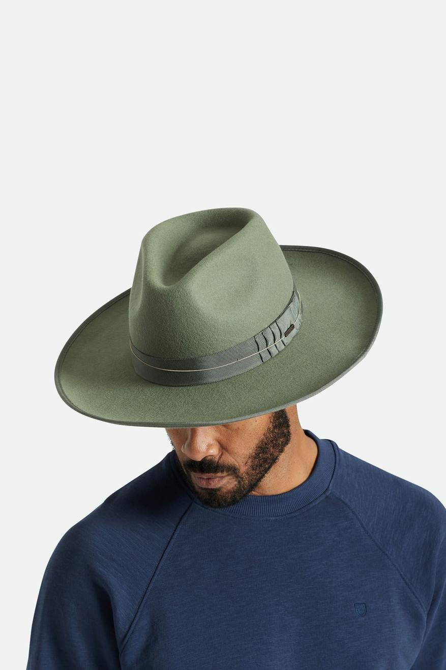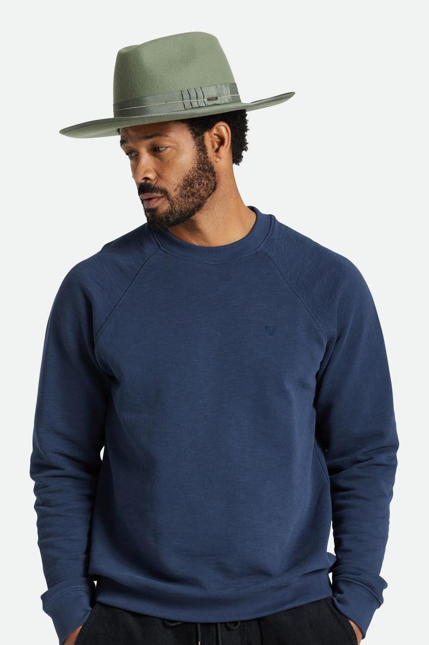 The Reno Fedora is a modern take on a heritage style. It has an iconic teardrop crease and a symmetrical front pinch. Made with responsibly sourced wool felt and layered with a grosgrain band and monochromatic brim taping.