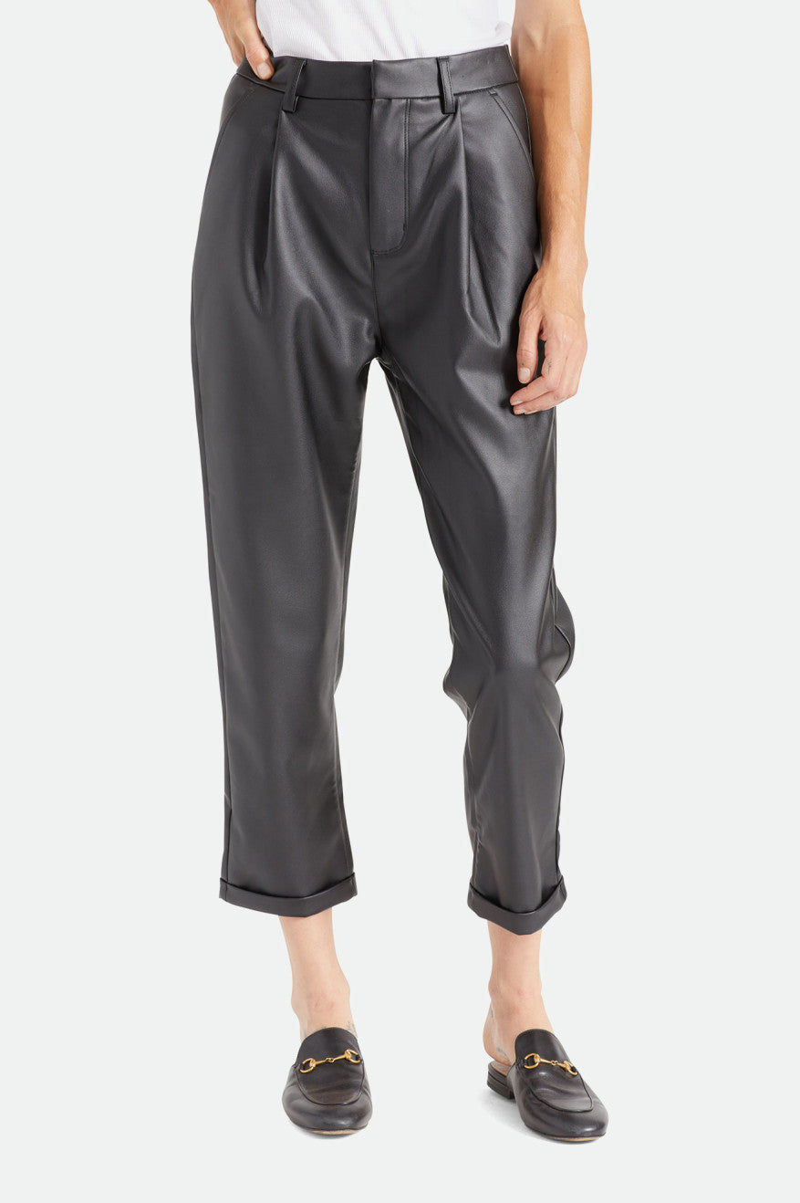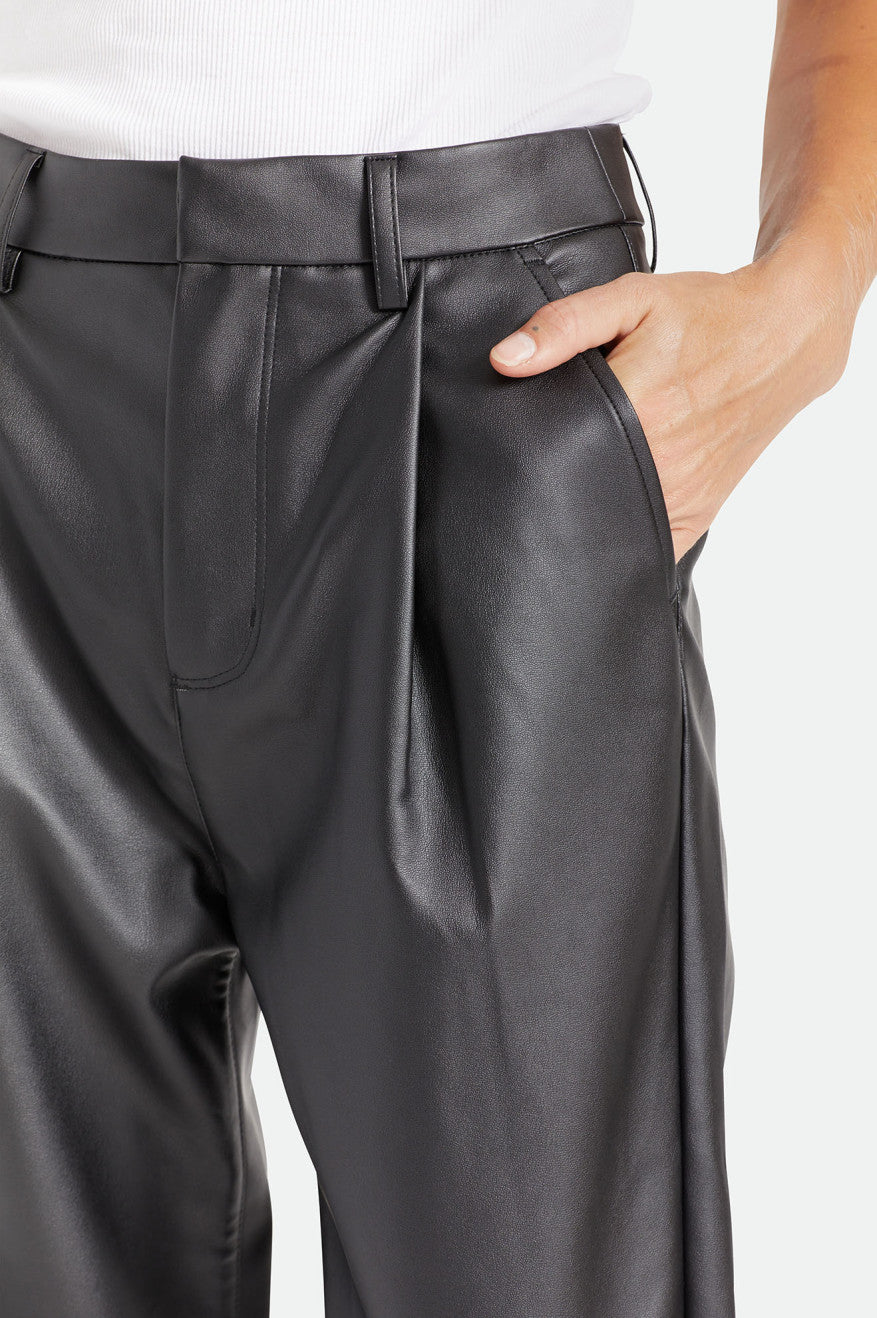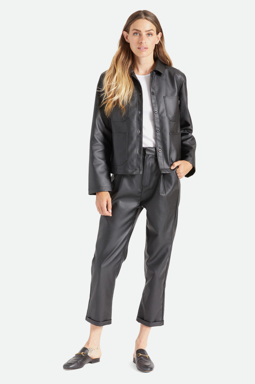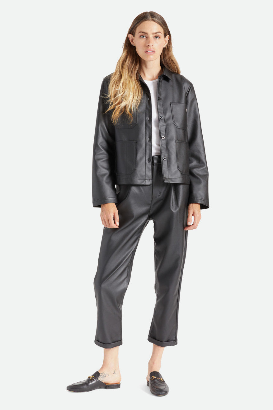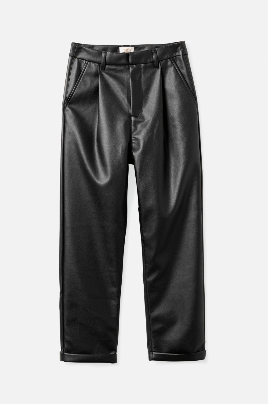 A modern take on the essential trouser, these are built with smooth and supple vegan leather accented with front pleats. High-waisted and with room to move, they're supremely comfortable and effortlessly stylish. Pair them with the Survey Boxy Chore Coat for a head-to-toe vegan leather look that will turn heads.