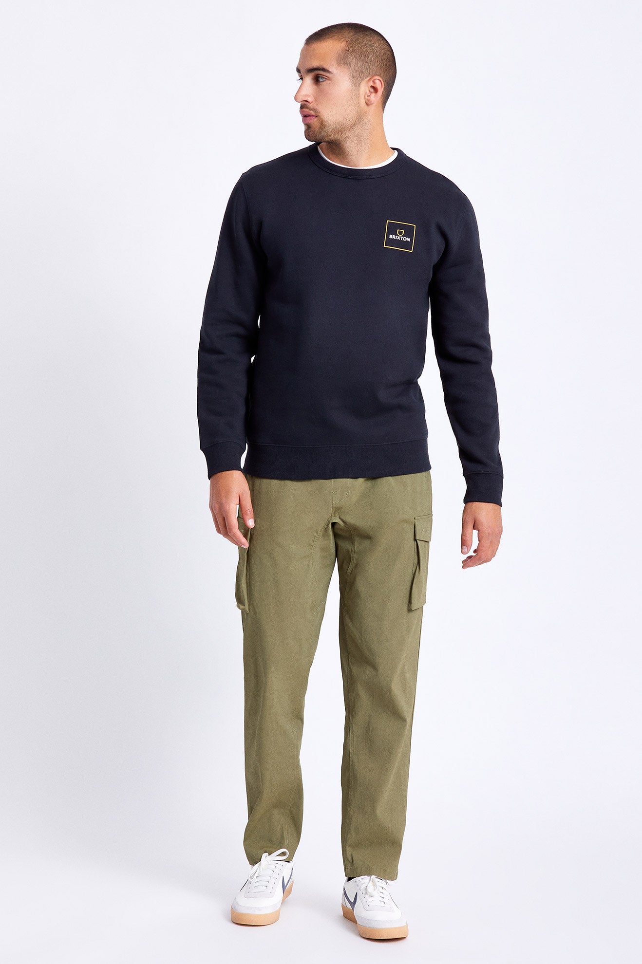 The Alpha Square Crew Pullover is a standard fit pullover fleece constructed with a cotton and polyester blend. Finished with a binded neck collar and featuring a screen print at left chest and center back, this one is clean, simple, and minimal in design. A great option for everyday wear.