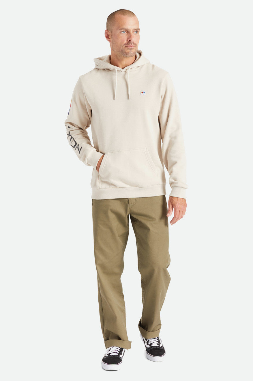 The Alton is classic hoodie crafted in a brushed fleece cotton blend. It features a standard fit finished with a right sleeve graphic and woven chest label. A drawcord hood and inset sleeves ensure this piece falls just right.