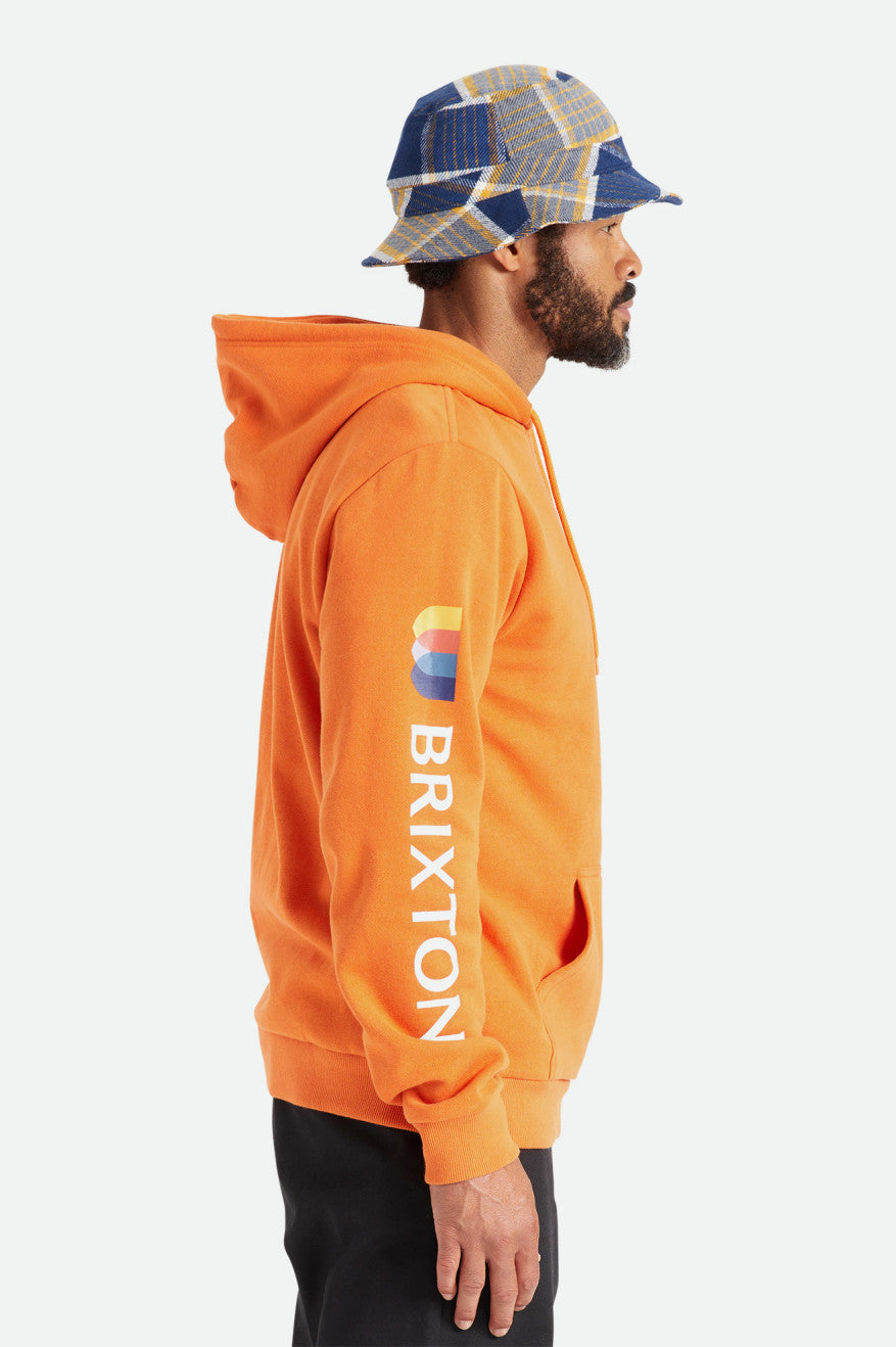 The Alton is classic hoodie crafted in a brushed fleece cotton blend. It features a standard fit finished with a right sleeve graphic and woven chest label. A drawcord hood and inset sleeves ensure this piece falls just right.