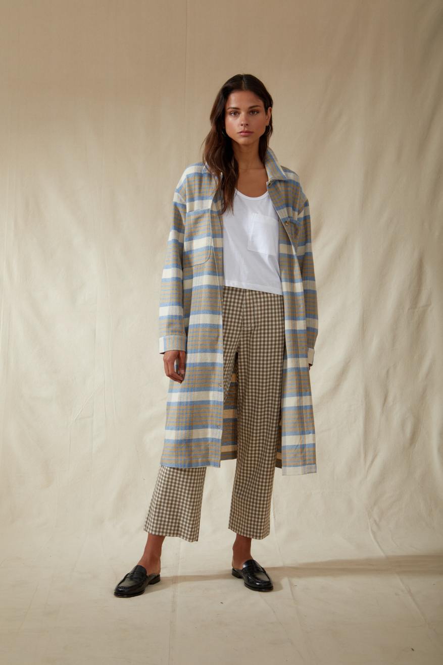 The Ashby Duster is a long button-up designed to be worn whenever you need a lightweight layer. It’s made with an easy cotton flannel that adds a touch of warmth without overheating. Ideal for moving between seasons, it’s finished with oversize patch pockets and contrasting cuffs.