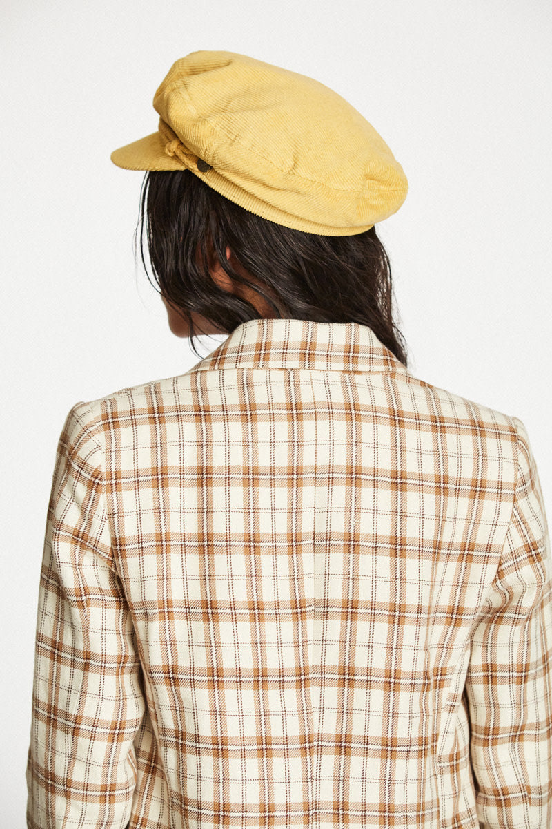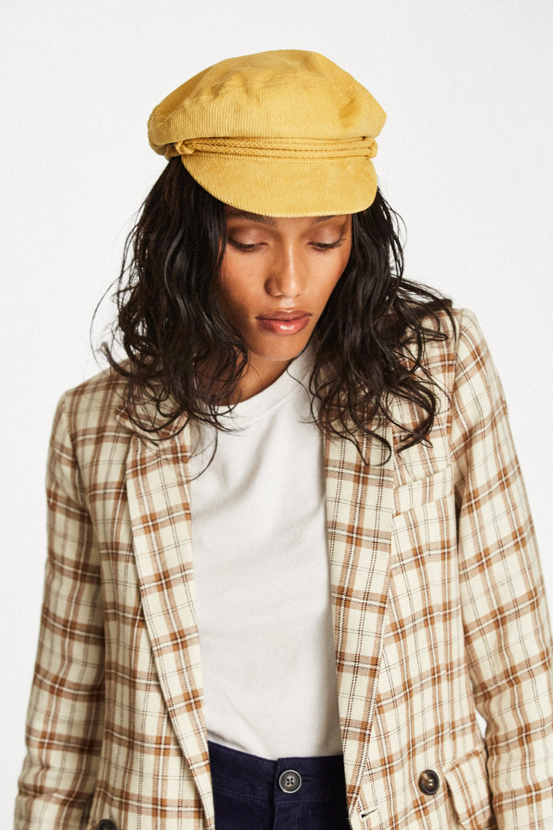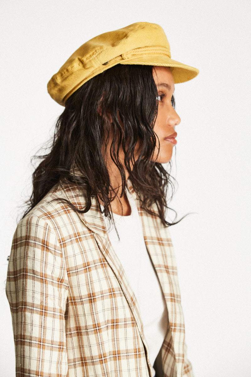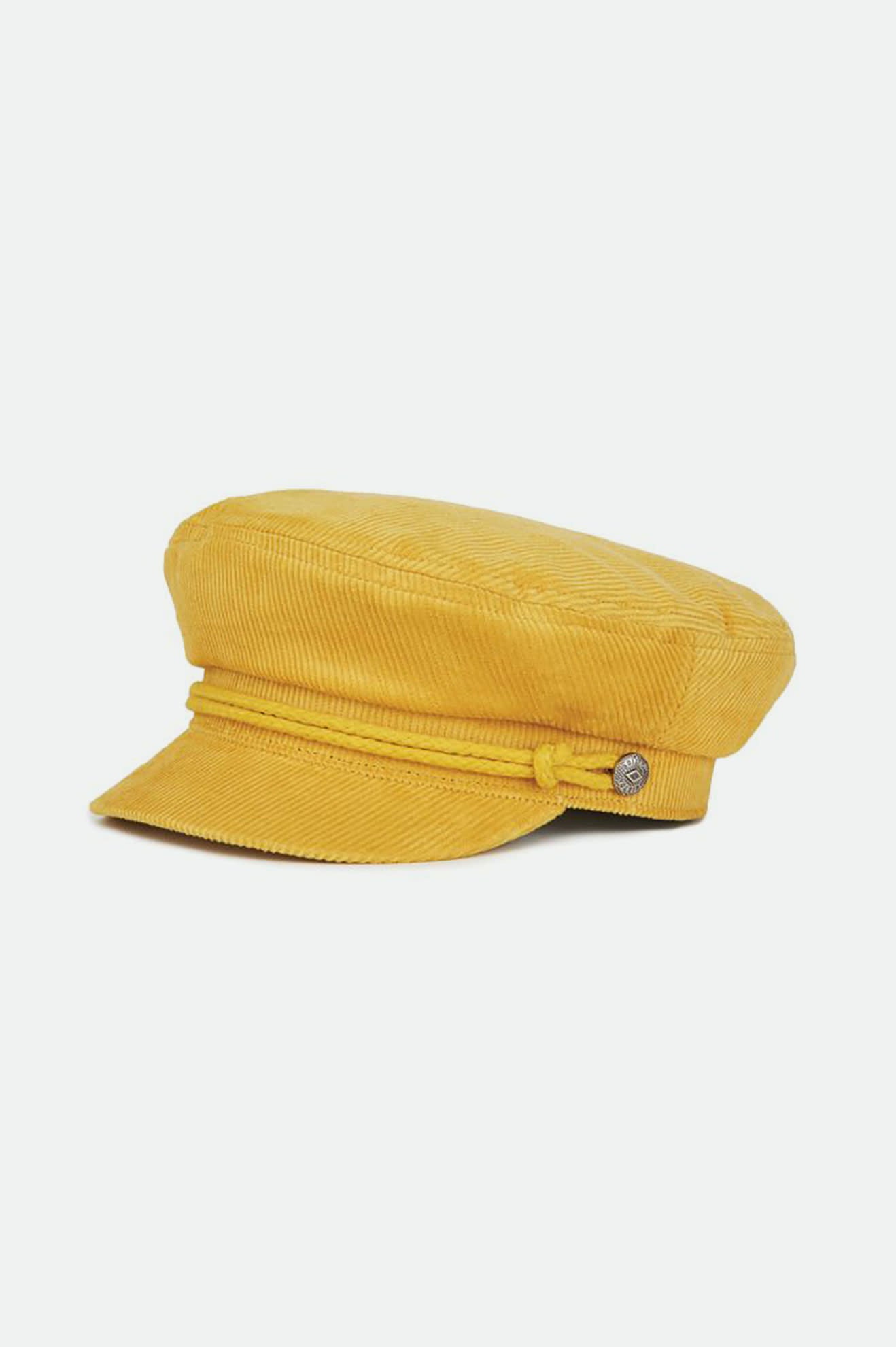 The Ashland Cap is a fisherman cap designed with mixed fabric and featuring both a genuine leather braided band and a metal logo pin.