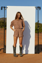 Made from lightweight linen, this patterned top features a perfectly relaxed fit and cropped length. Finished with drop shoulders and short balloon sleeves.