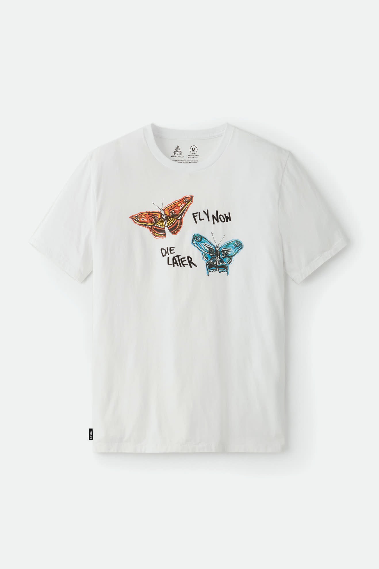 The BB Fly Now S/S Tee is a tee made of a cotton and polyester blend. Because of the tailored fit, it looks great on its own or layered up, and featuring screen printed butterflies and embroidered letters, it does a great job of making a subtle statement on its own—thanks to the artwork by BB Bastidas. Minimal effort delivering maximum aesthetic.