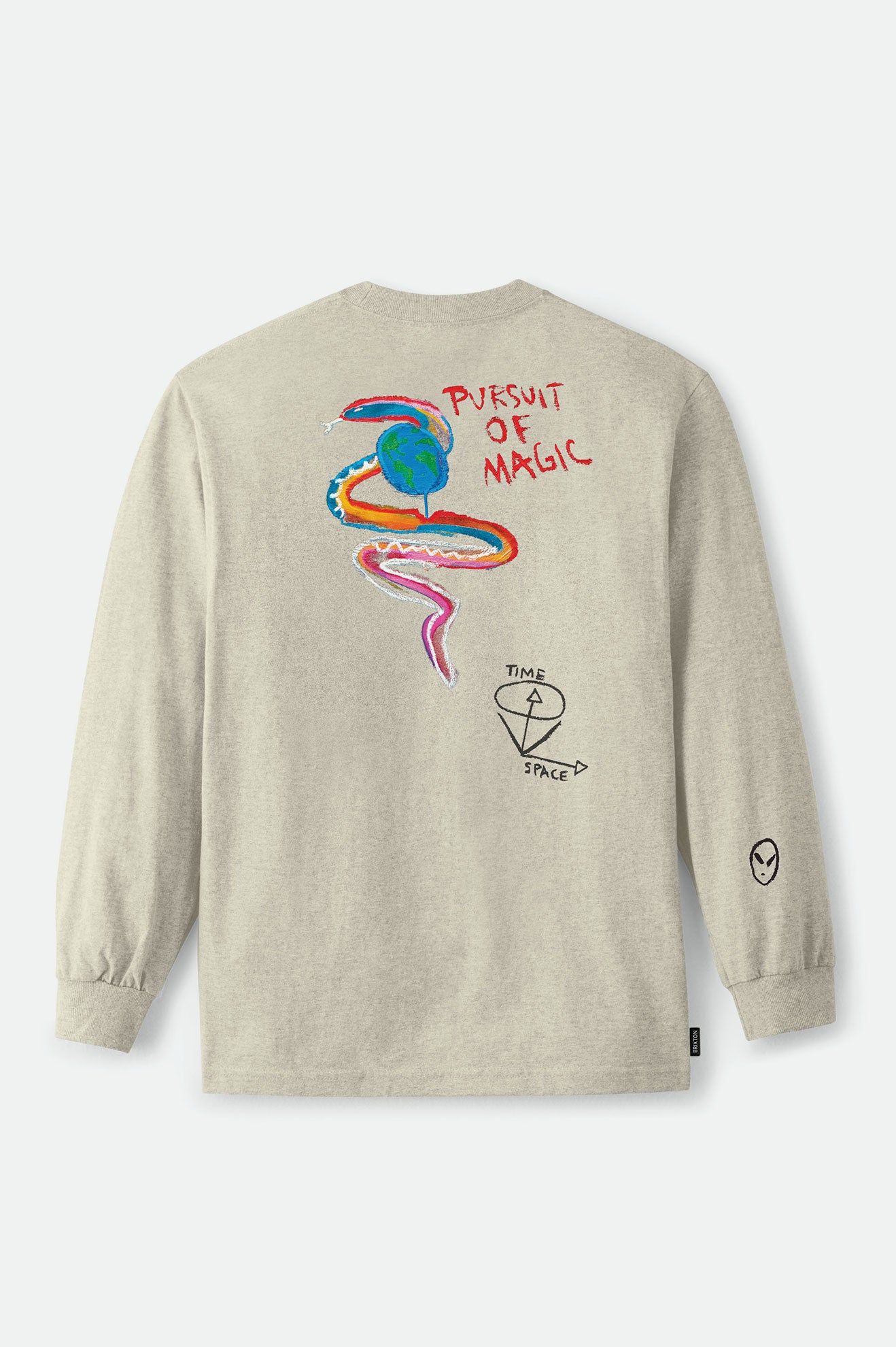 The BB Time Machine L/S Standard Tee is a standard fit tee constructed in 100% cotton and made for relaxed street style. Featuring hand painted art on the chest, sleeve, and back, as well as embroidery on the wrist—all thanks to artist BB Bastidas—this one is here to elevate any look with ease.