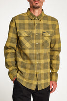 The Bowery Flannel is a llong-sleeved button shirt made in cotton blended yarn-dyed flannel fabric with a custom softener wash. It features two chest pockets, a standard shirttail hem, adjustable sleeve cuffs, and a woven Brixton label at pocket.