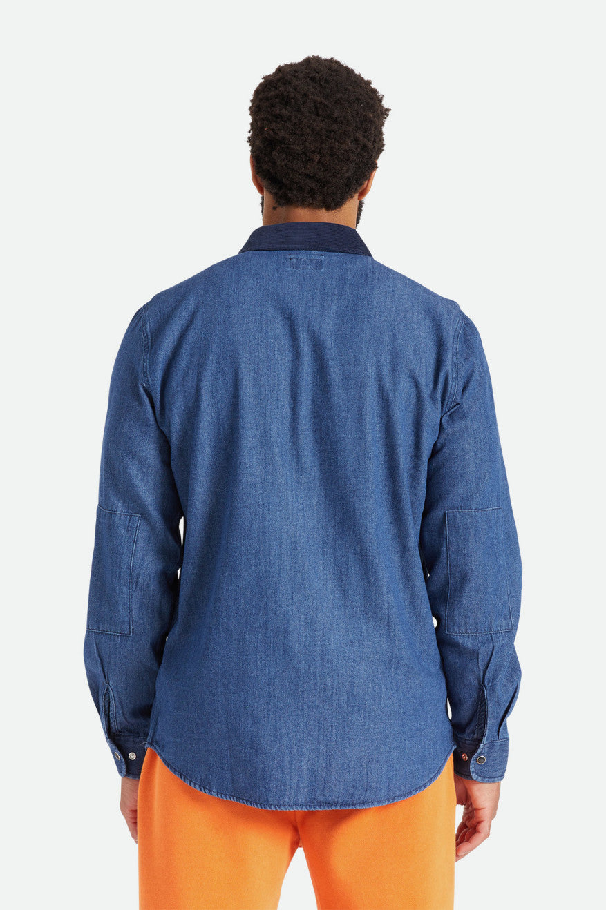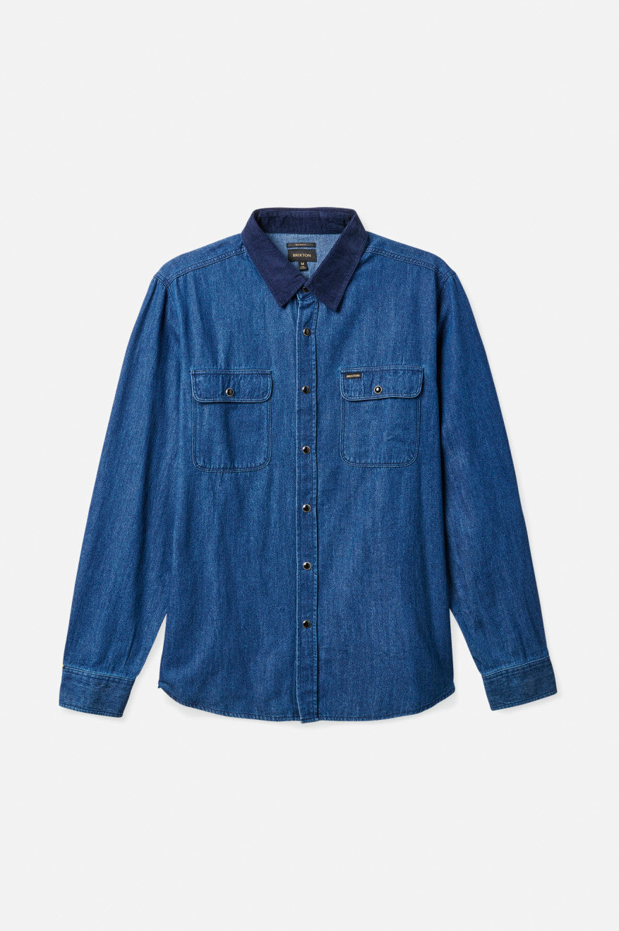A fresh take on a Brixton staple, the Bowery Reserve L/S Woven adopts Western-inspired influences for understated style. Opting for a seamless yoke, it keeps the dual chest pockets of the classic Bowery but swaps out the front buttons for pearl ring snaps. Elbow patches and a corduroy collar add durability in high-wear areas and the entire garment has been treated with a softener wash for that favorite-shirt feel.