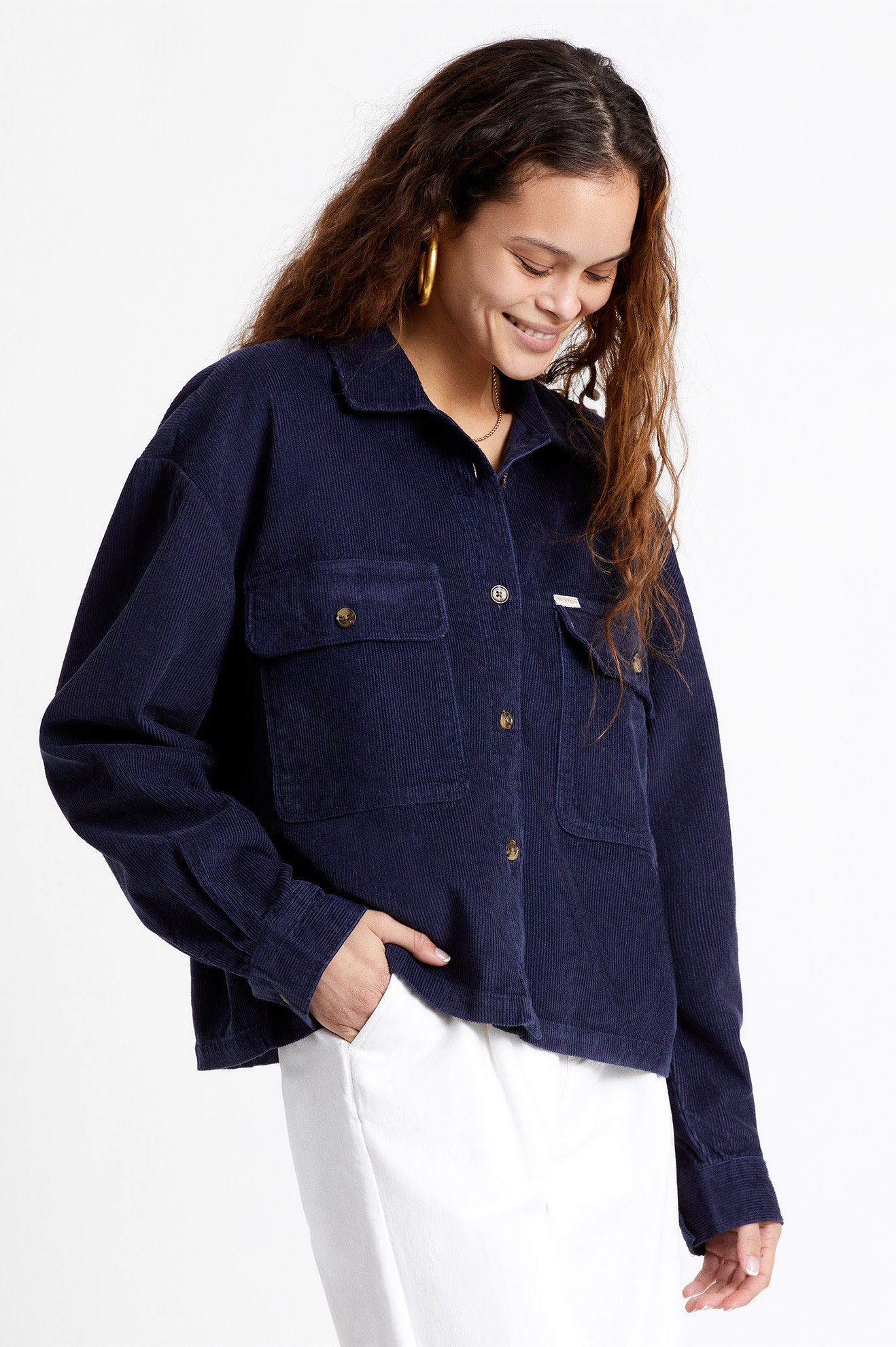 Made with a 100% cotton fine-wale cord, The Bowery W L/S Corduroy has a feminine silhouette to it with a dropped shoulder and slightly cropped fit. Featuring chest patch pockets and adjustable sleeve cuffs, this one is designed to look great but still be functional for those days you literally need to roll up your sleeves and get to work!