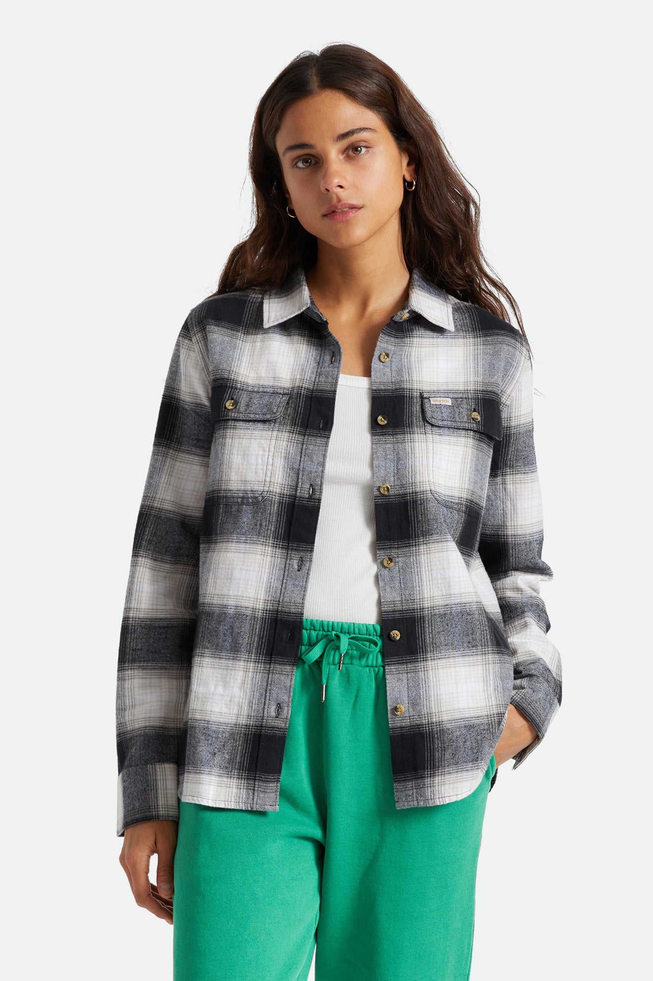 The Bowery Women’s Standard L/S Flannel has all the makings of a wardrobe staple. Made from 100% organic cotton with brushed yarn-dye flannel it features chest patch pockets, scooped hem, logo buttons, and a logo label on the pocket flap to finish it all off. Wear it over jeans or pants—it elevates both.