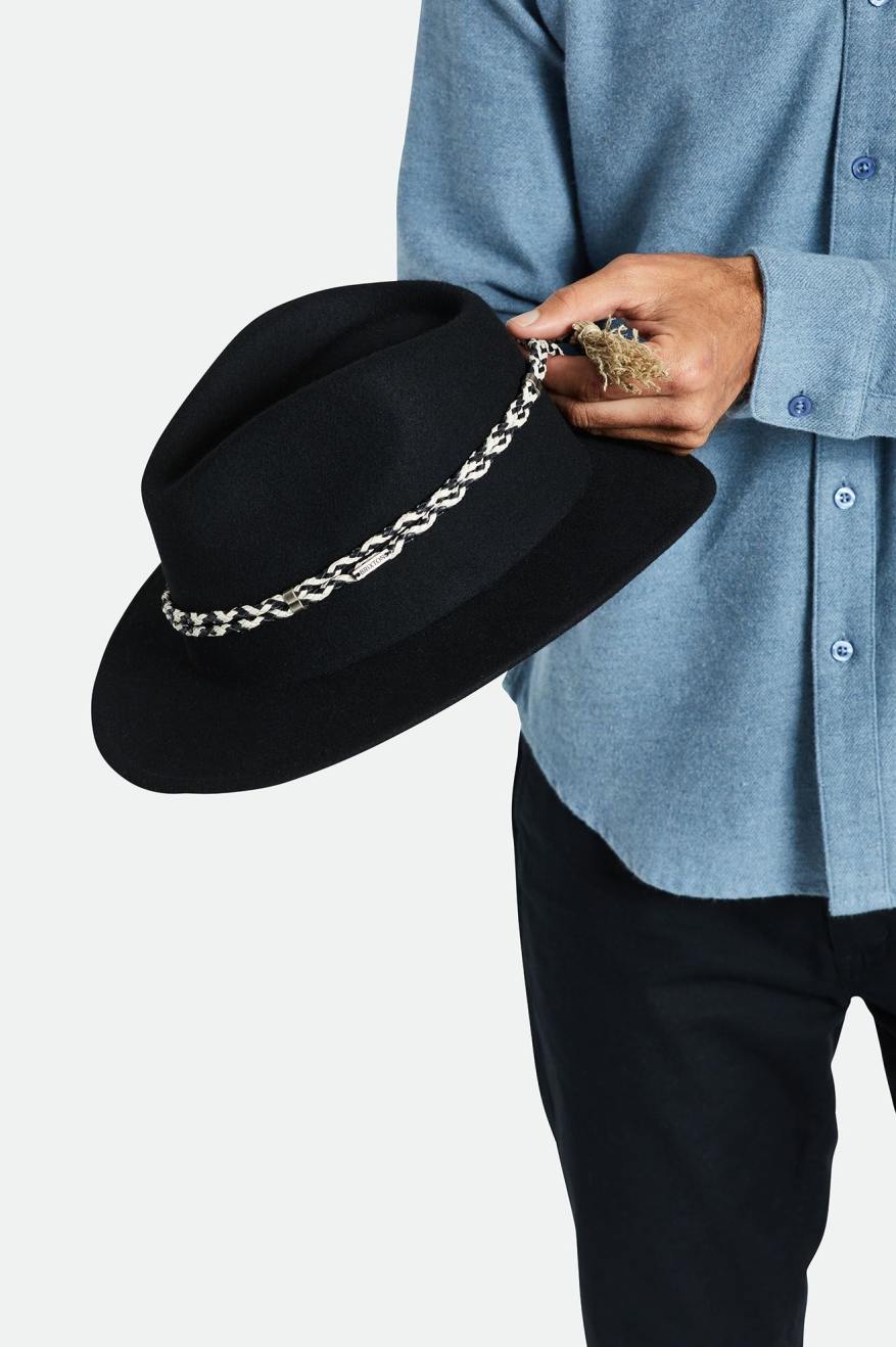 Two layers of leather add twice the details to this adjustable hat band. Finished with a custom metal headwear plaque.