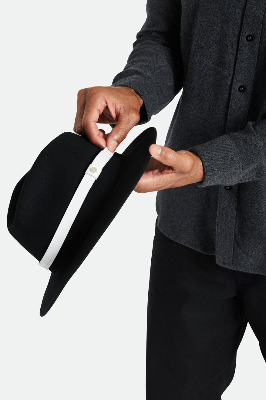 Accent your favorite Brixton fedoras with this faux-leather hat band finished with a custom shield pin.