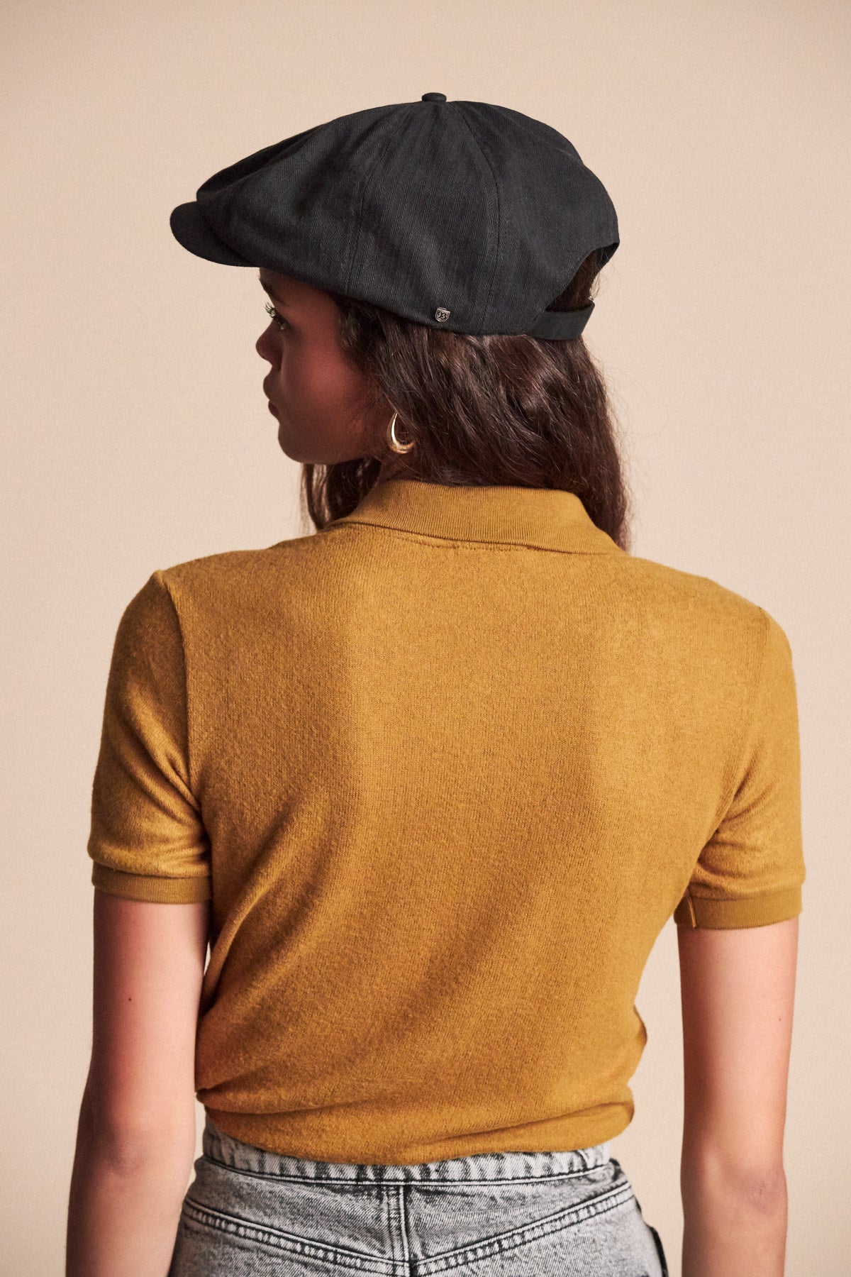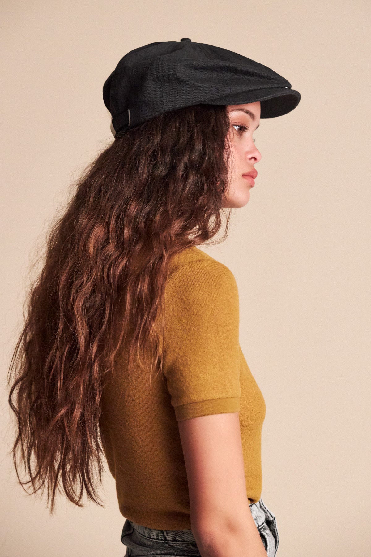 A unisex eight-panel cut-and-sew snap cap with adjustable strap and a metal Brixton B-shield. Color: Washed Black.
