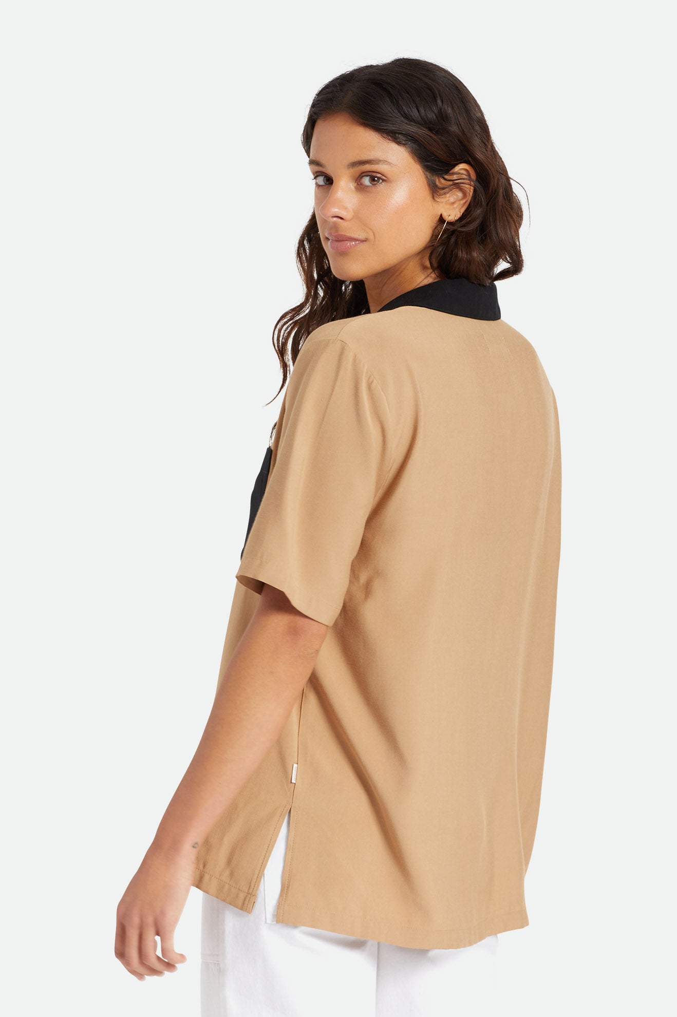 The Bunker Block is a short sleeve button-up crafted with flowing viscose satin. Featuring a relaxed fit and slightly longer length, this easy-wearing garment gives major backyard barbecue vibes. Wear it as a cover-up poolside or button it up for happy hour.