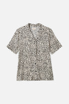 The Bunker gets a longer boyfriend fit in this short-sleeve button-up. Made with lightweight viscose satin that drapes beautifully, it has a custom cheetah print that pops. Finished with a notched collar and side seam vents.