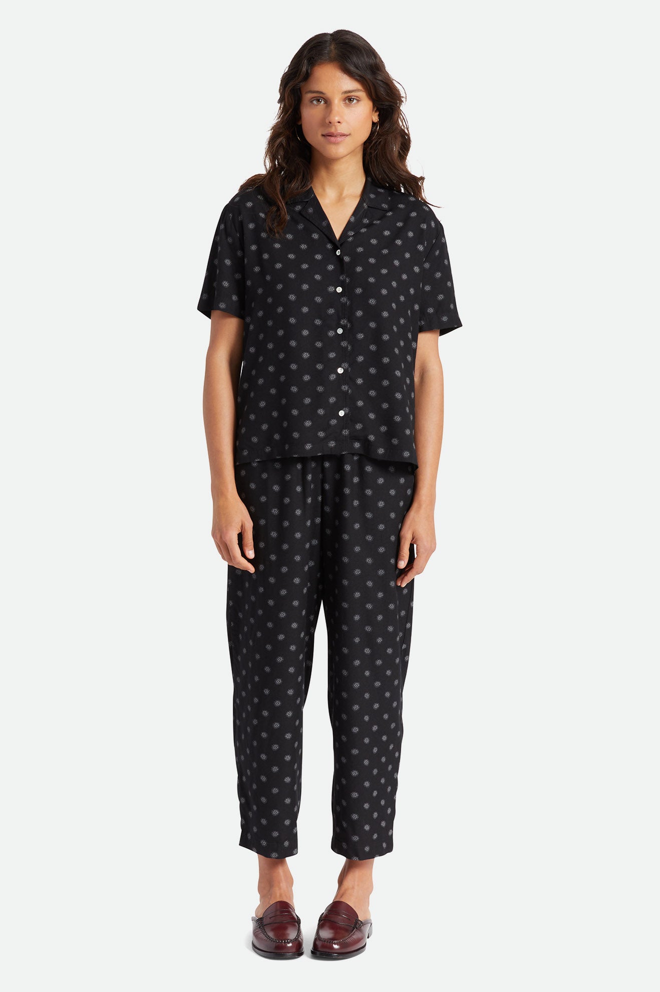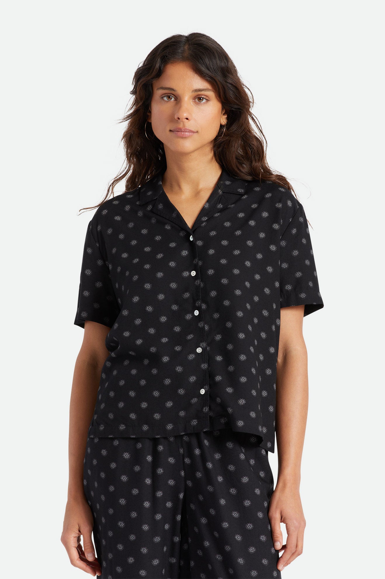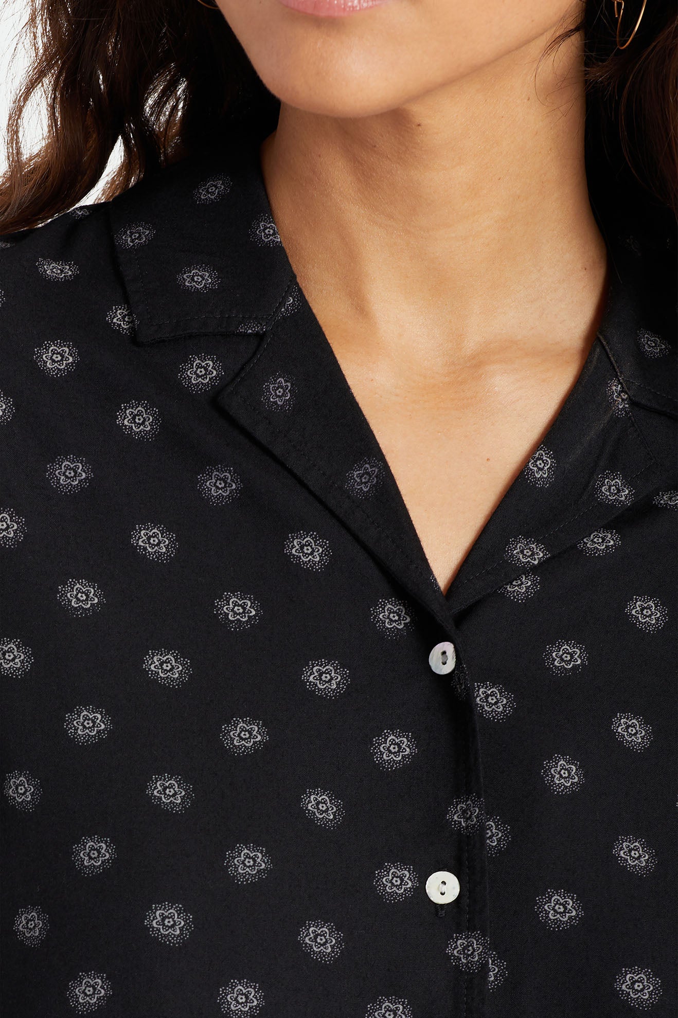 This take on our Bunker features a fresh daisy print that pairs perfectly with the Daisy Dot Pants. Featuring a notched collar and side seams, this easy-wearing top lands at the hip. Wear it open as a cover up or closed for flowy goodness.