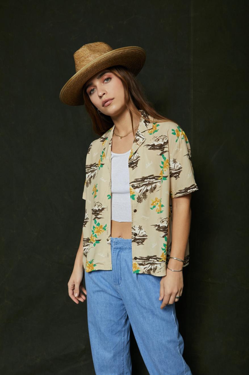 This is your vacay every day, 5-star button-up. Designed with 100% viscose that drapes beautifully, it has a relaxed fit that falls just right. With a classic camp collar that offers easy polish, you can wear it closed with trousers or open at the pool.