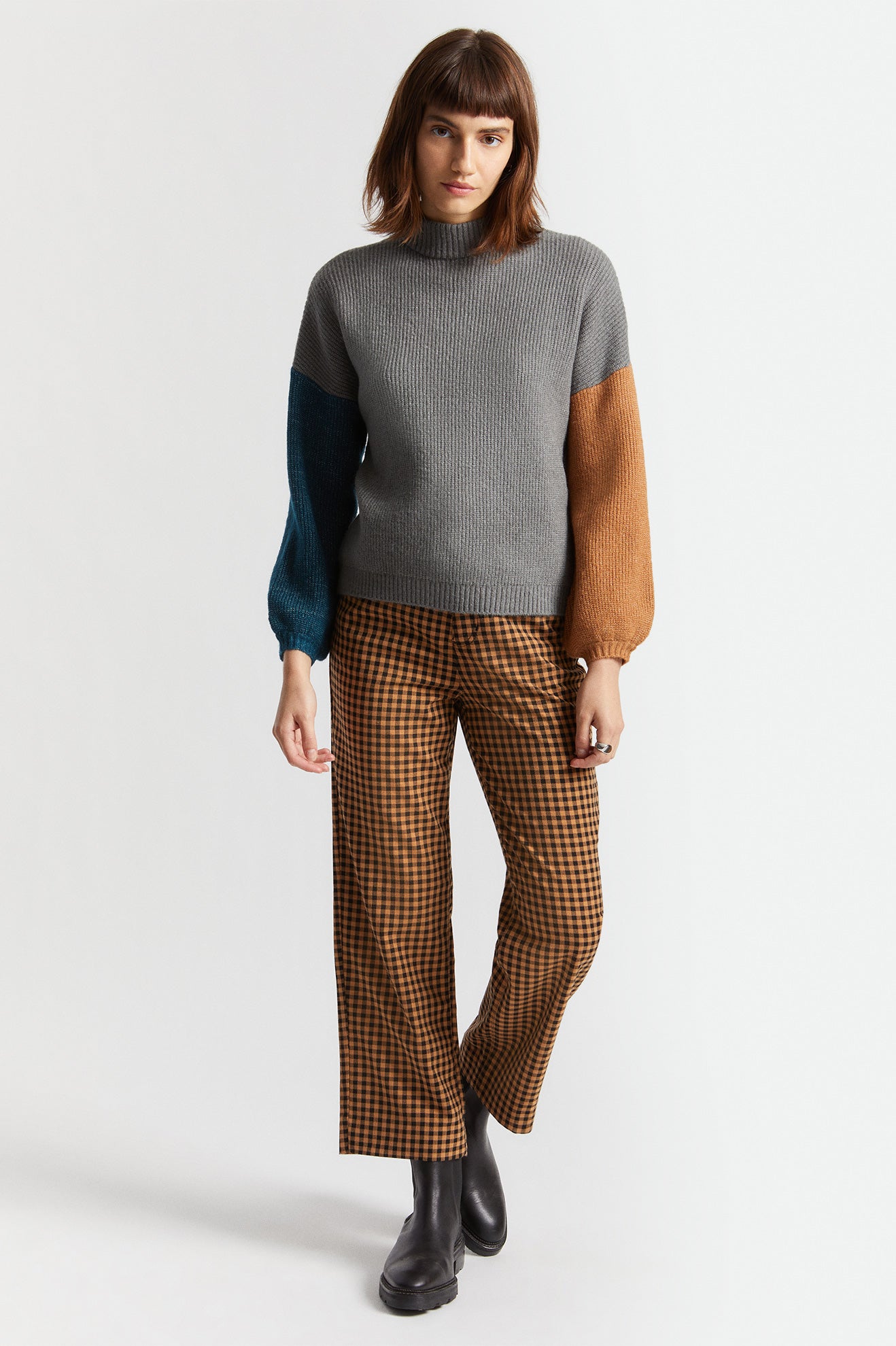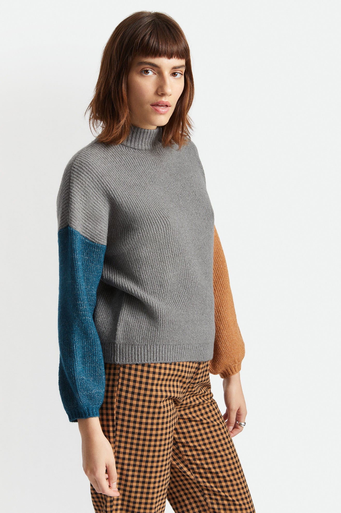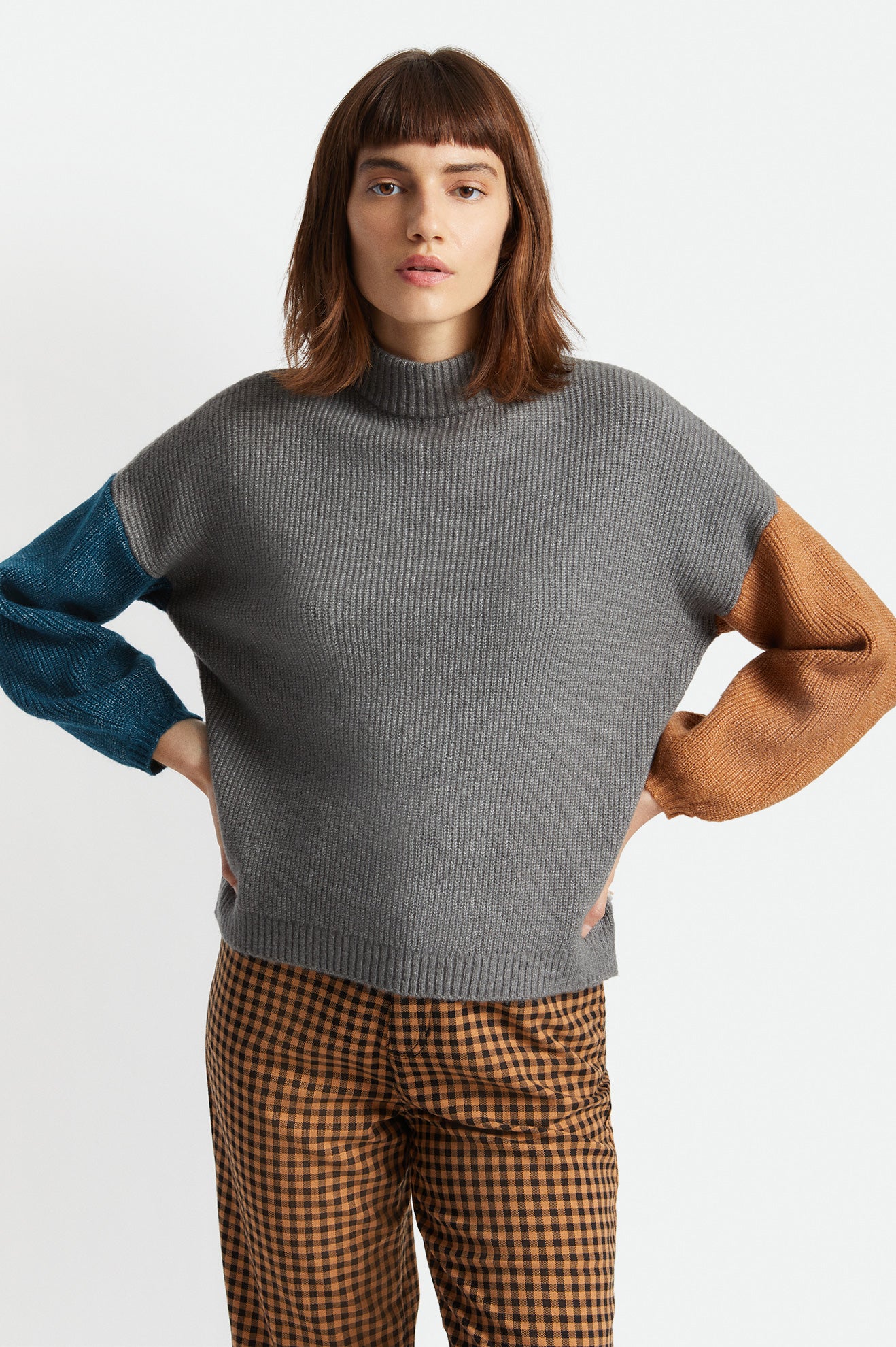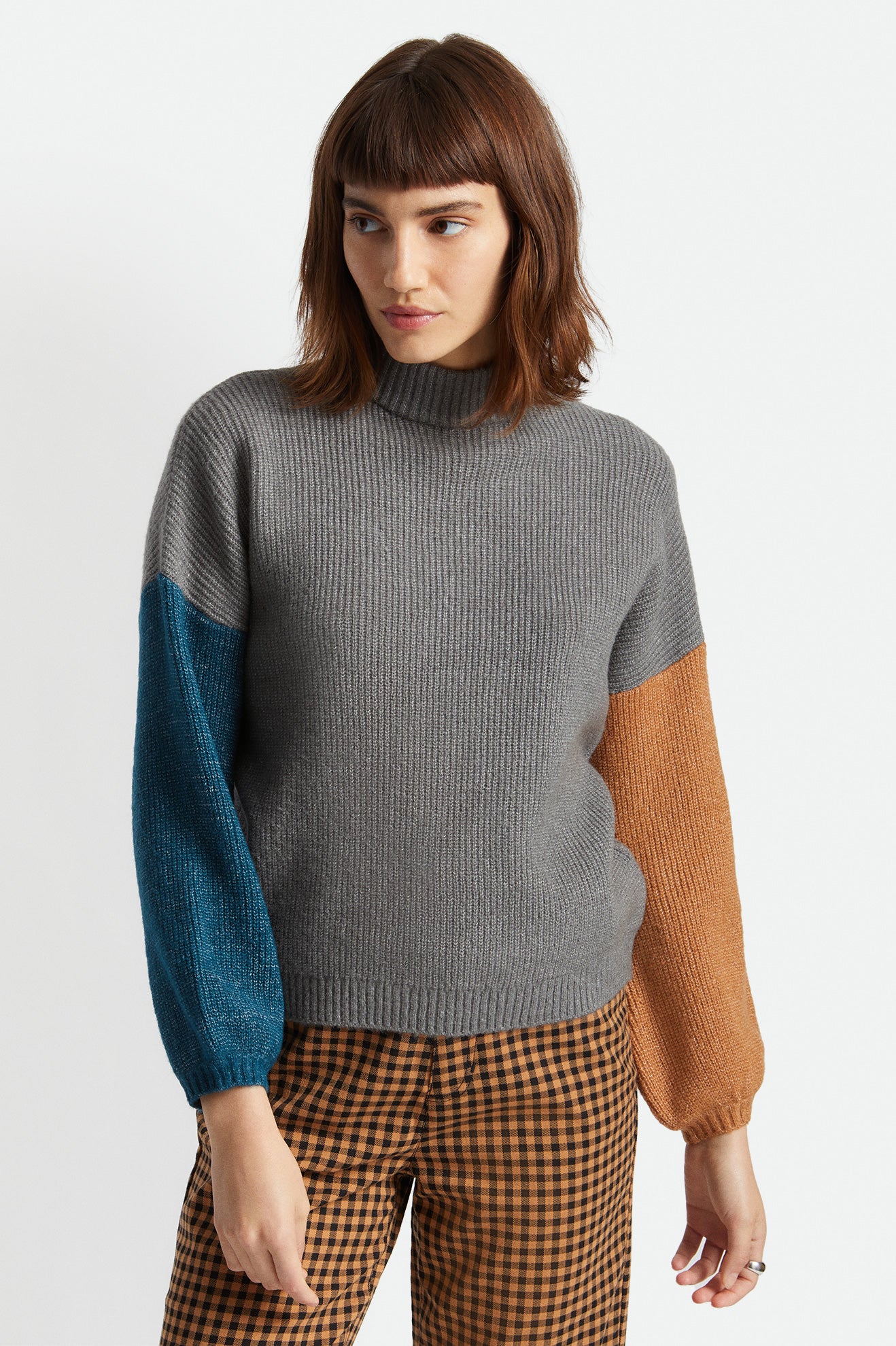 Color blocking and a balloon sleeve add character to this fun piece—a great wardrobe staple to keep you warm through the fall and winter as well as layer up on chillier spring and summer evenings.