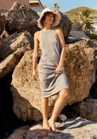 This midi dress is cast in soft organic cotton and colored with a garment dye. It’s been treated with an acid wash that creates a lived-in look and feel for elevated comfort. Finished with a flattering scuba neckline and center back body seam.