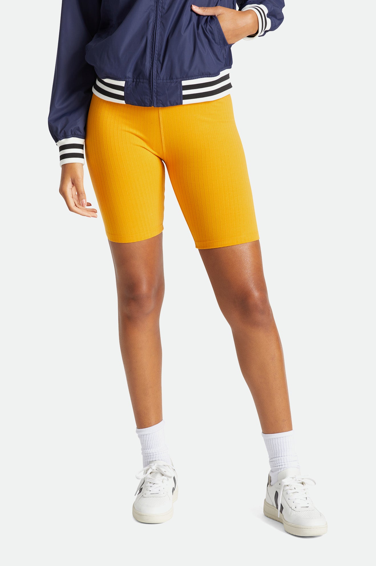 Textured ribbing adds all-over structure to these slim fit bike shorts. They're made with a soft and stretchy poly blend that's designed to move with you. A wide, high-cut waistband creates a smooth silhouette.