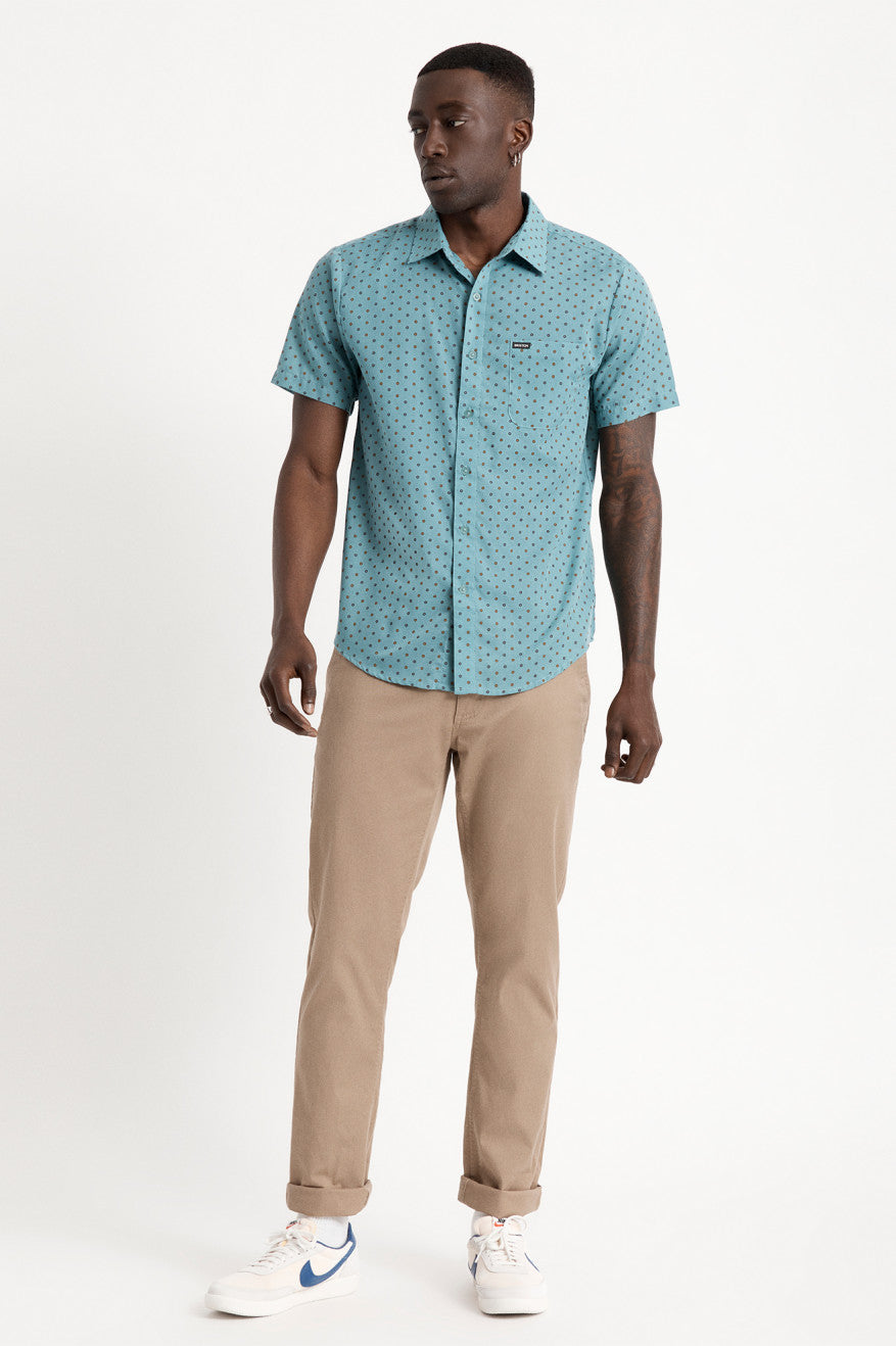 A classic button-up finished with a curved hem. This time of year calls for the Charter Print Woven shirt. It’s naturally breathable and will always maintain its shape and fit, thanks to its cotton and polyester blend fabrication. This shirt is an absolute essential to be worn again and again.