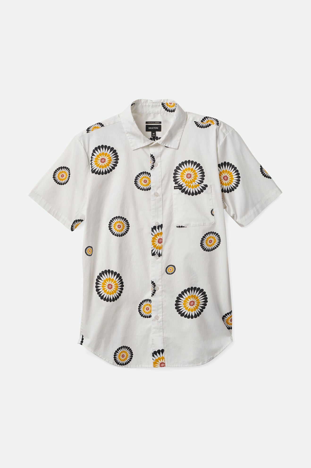 This collared shirt is designed to stand out. Crafted with a stretchy cotton poly blend and featuring original prints and patterns from San Diego artist, Mitch King. It’s been treated with an enzyme wash to create an oh-so-soft feel.