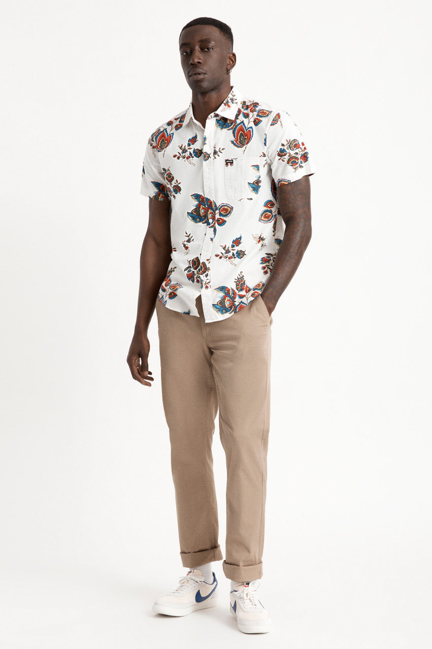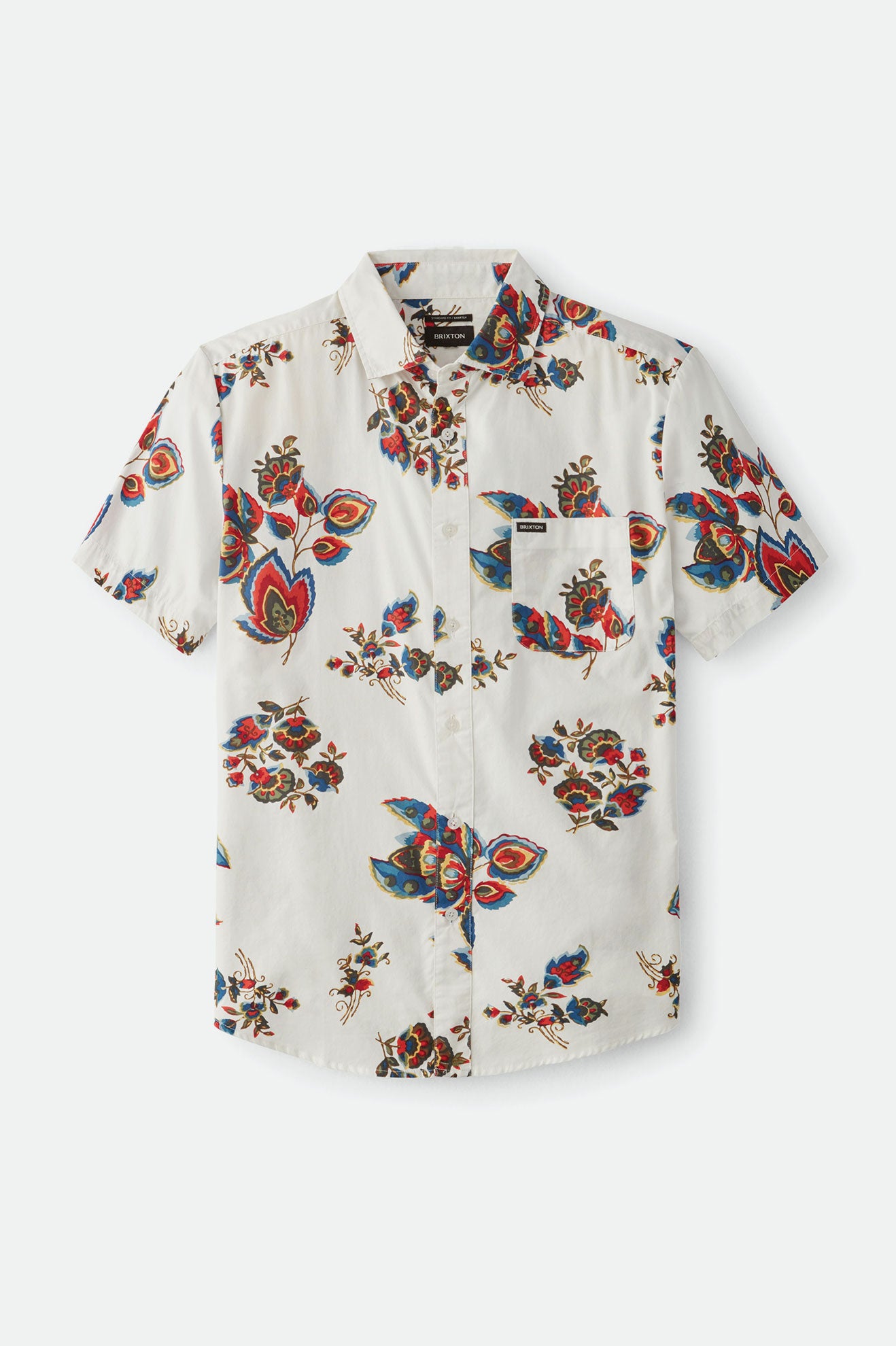 It features a single chest pocket, a standard shirttail hem, and a woven Brixton label at pocket.