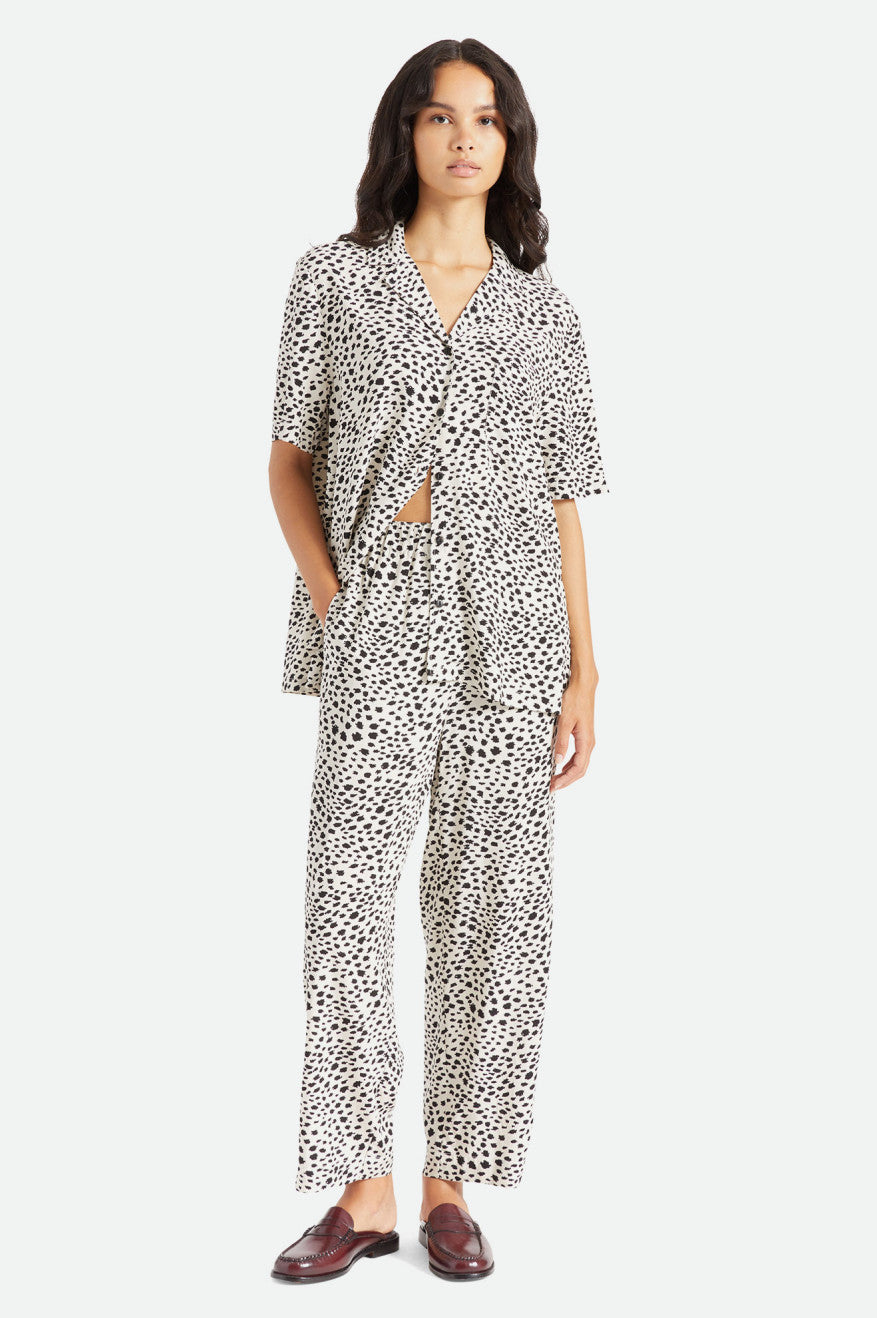 The Cheetah Crop Pant delivers eye-drawing style in a lightweight silhouette. Made with beautiful viscose satin in a custom cheetah print, it has a cropped leg and high waist. Finished with on-seam pockets and back patch pockets.