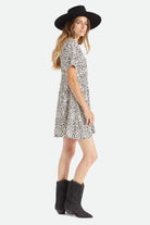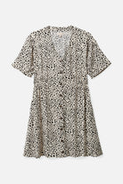 A custom cheetah print decorates the Cheetah Dress from shoulder to hem. Made with flowing viscose satin, it's breathable and buoyant. Layer it over tights for cooler weather or pack it in your suitcase for trips down south. Short sleeves and a shirred elastic waist.