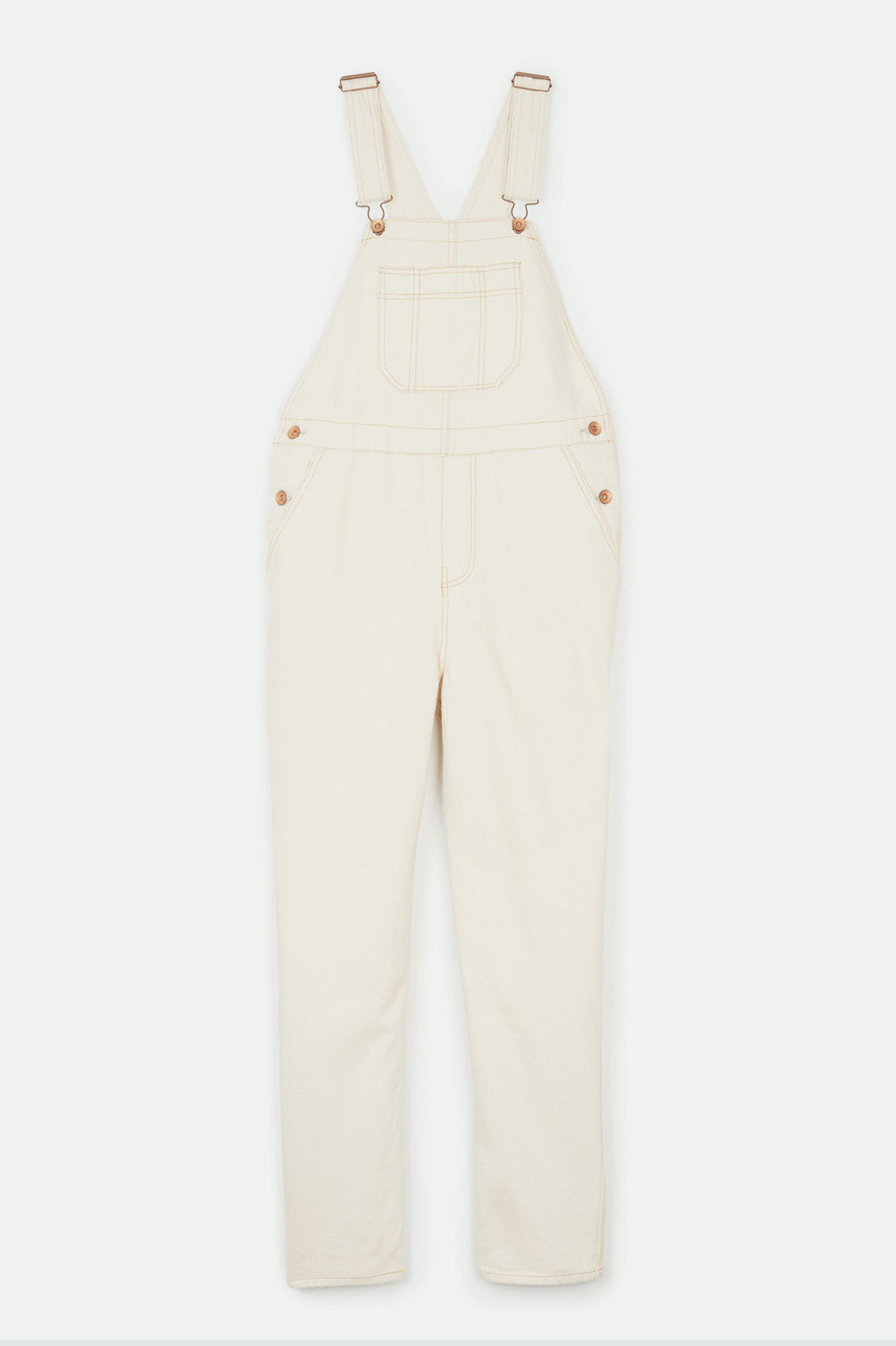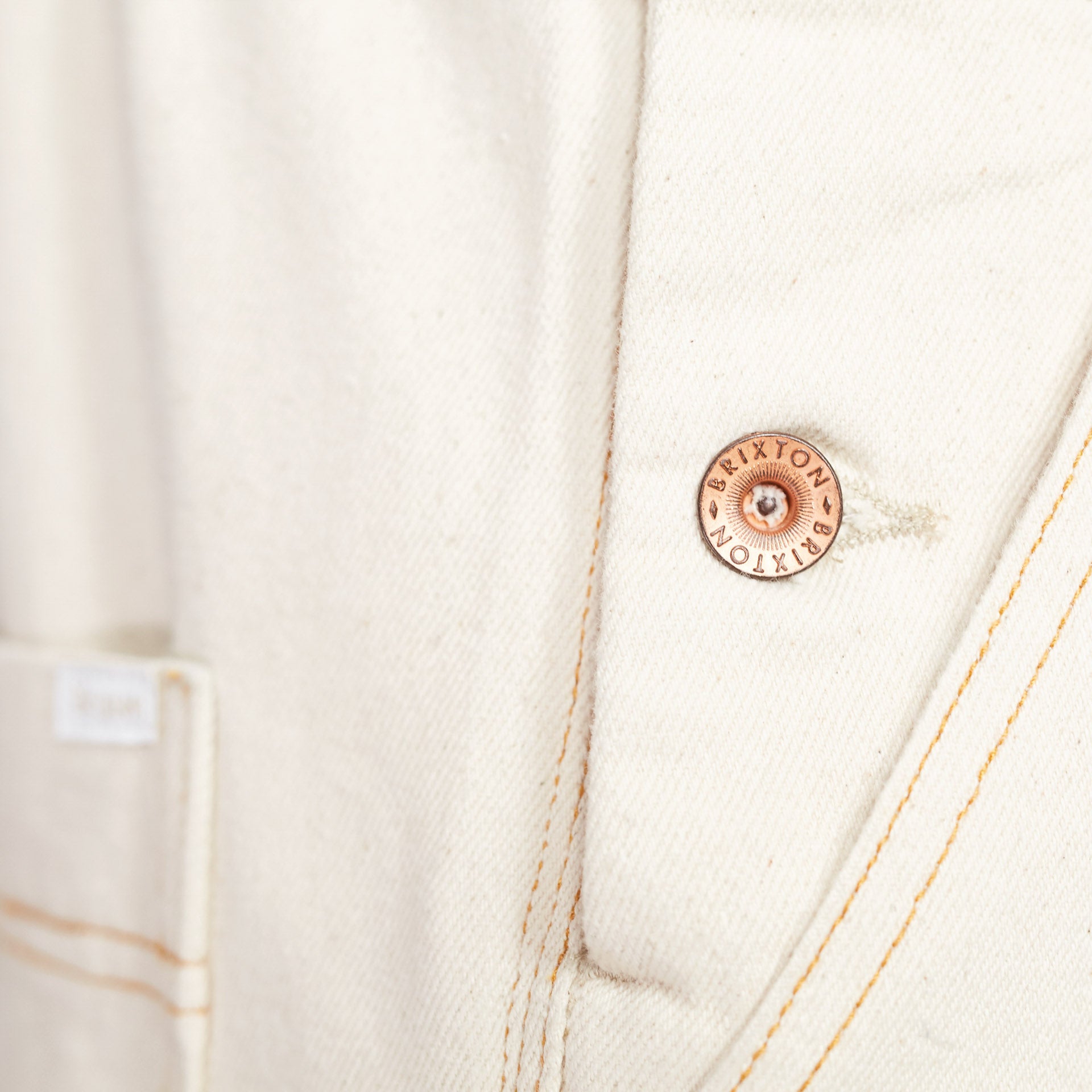 A boyfriend-fit overall properly crafted in 11-oz. 100% cotton natural twill. It features custom tack buttons, multiple pockets, hammer loop, contrast stitching, woven Brixton labels, and a 16.5" leg opening.