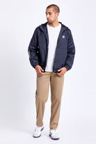 The Claxton Alton Lightweight Zip Hood Jacket is an easy-to-wear, polyester jacket that features mesh lining, an adjustable hood, and elastic at the wrists and waist—as well as dobby fabric, highlighted by it's unique texture. Built with materials that repel water and wind, this jacket is great choice to throw on over a hoodie or sweater to keep you extra warm and protected from the elements. Finished with a logo at the left chest as well as a sleeve print, it delivers on understated style and lots of utility.