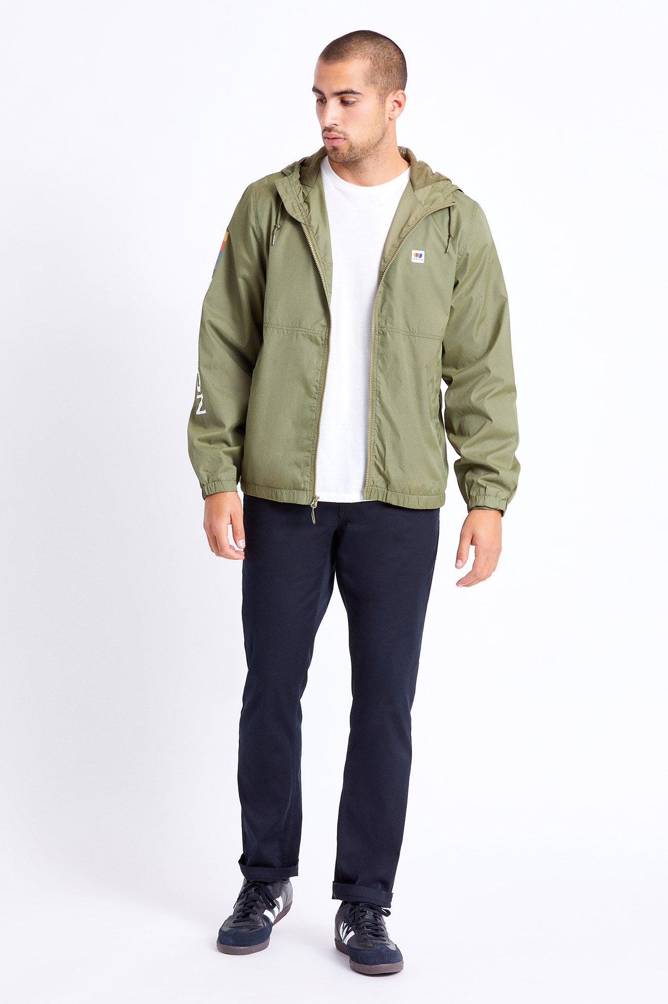 The Claxton Alton Lightweight Zip Hood Jacket is an easy-to-wear, polyester jacket that features mesh lining, an adjustable hood, and elastic at the wrists and waist—as well as dobby fabric, highlighted by it's unique texture. Built with materials that repel water and wind, this jacket is great choice to throw on over a hoodie or sweater to keep you extra warm and protected from the elements. Finished with a logo at the left chest as well as a sleeve print, it delivers on understated style and lots of utility.