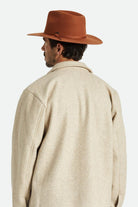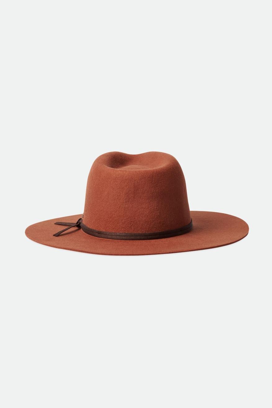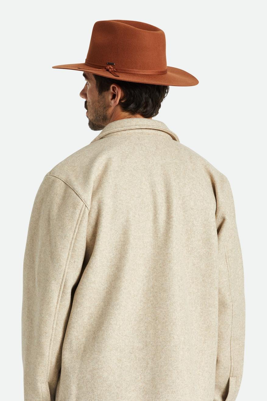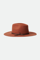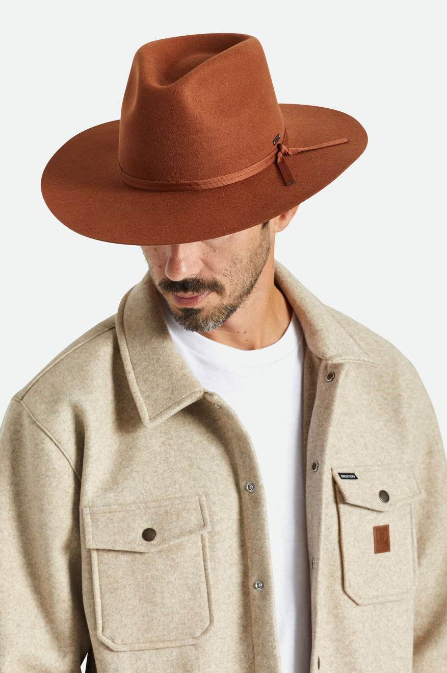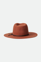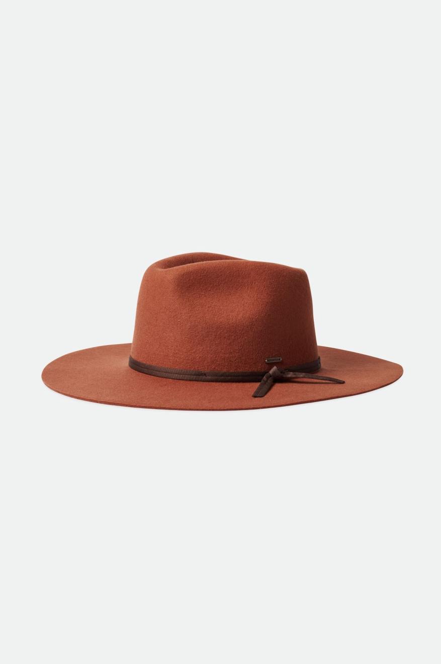 A structured wide-brim hat with a raw edge. Made from certified responsibly sourced wool felt that meets the Responsible Wool Standard for Sustainability. Find your perfect fit with the adjustable interior sweatband. It's finished with a thin grosgrain band and a metal Brixton pin.