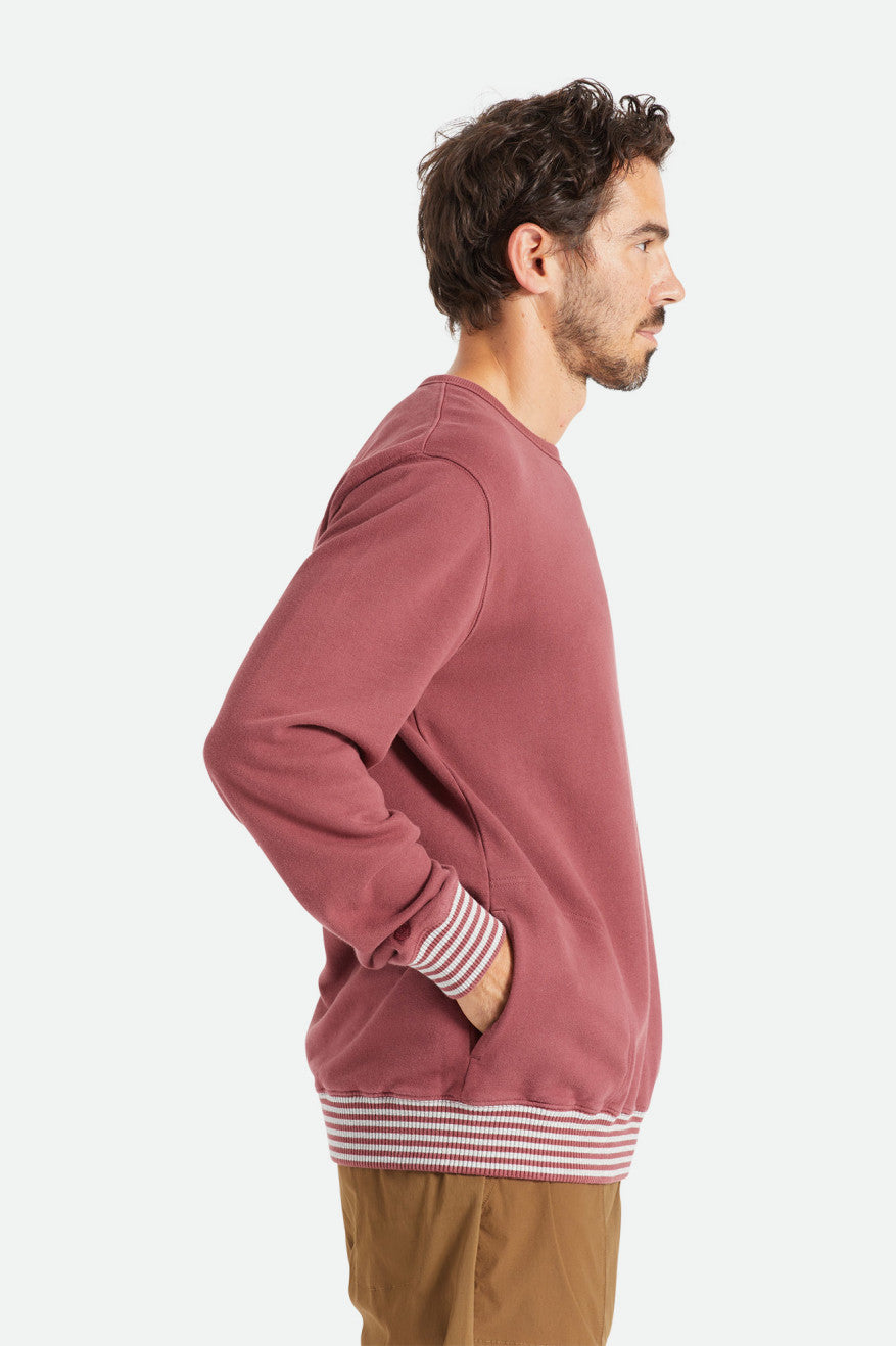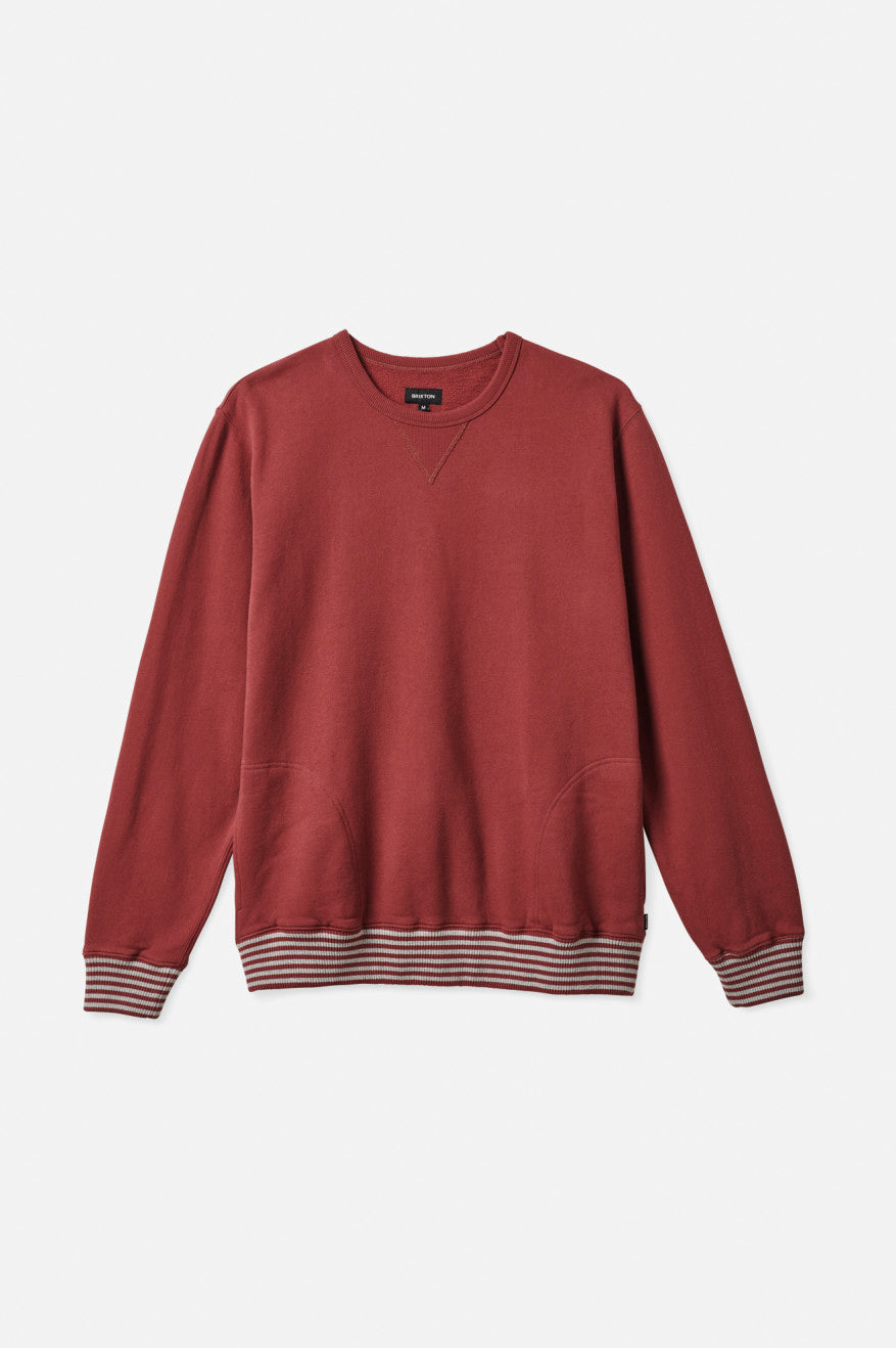 The Collegiate Pocket Crew is an essential sweatshirt made with supreme softness. It's been treated with a worn-in wash and finished with collegiate stripes along the hem and cuffs so it feels like a vintage find. Detailed with a v-set collar and shield embroidery at the sleeve.
