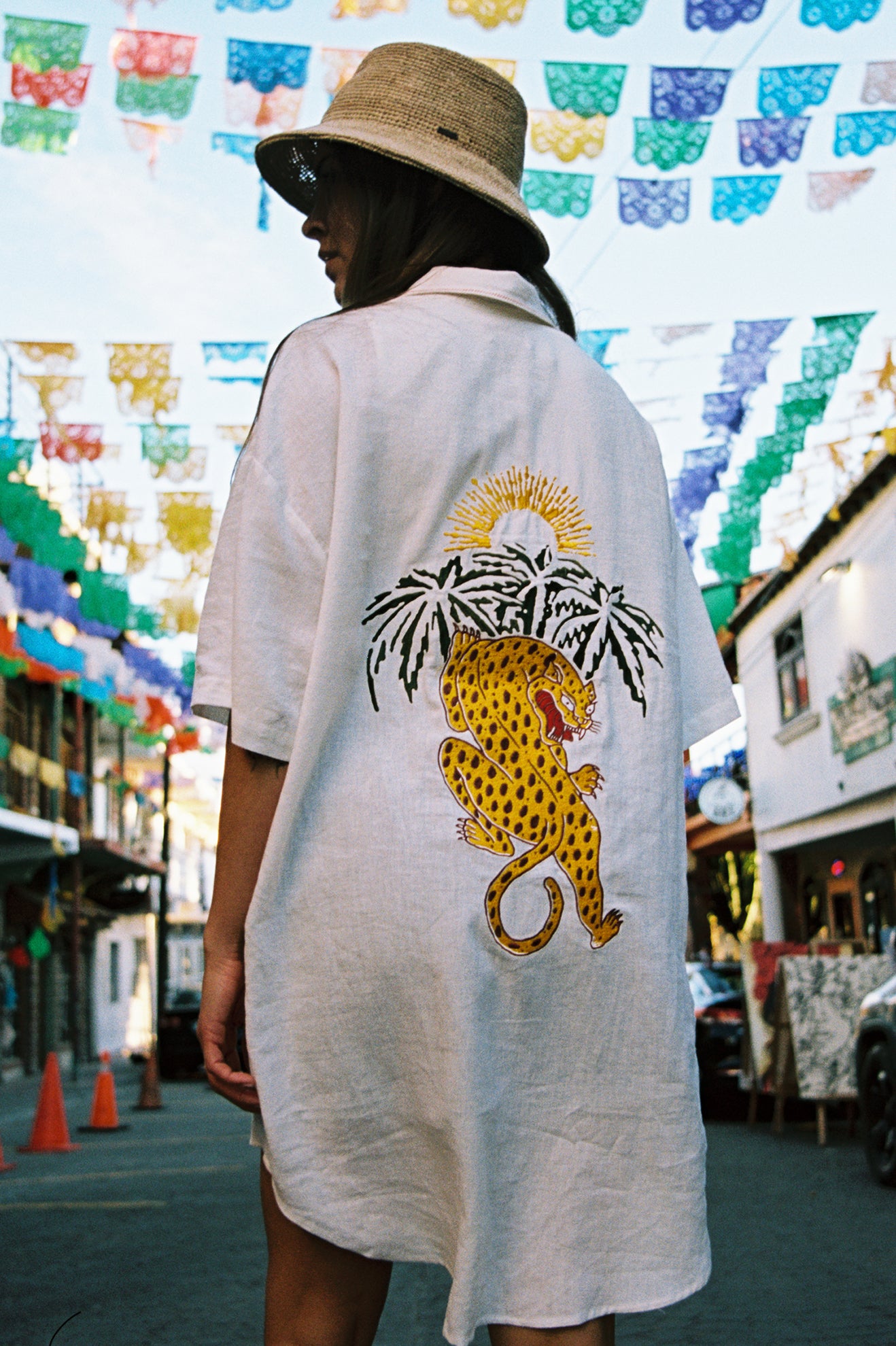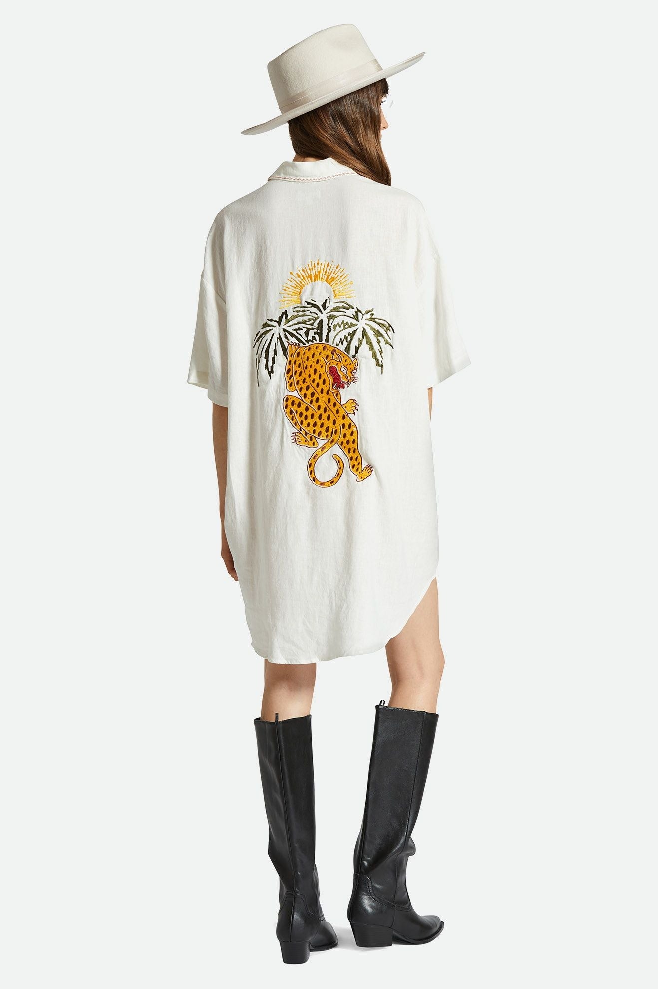 The Condesa Linen Shirtdress is an effortless button-up in a breezy linen blend. Featuring a relaxed fit, it’s decorated with an oversized jaguar embroidery at the back and contrast stitching.