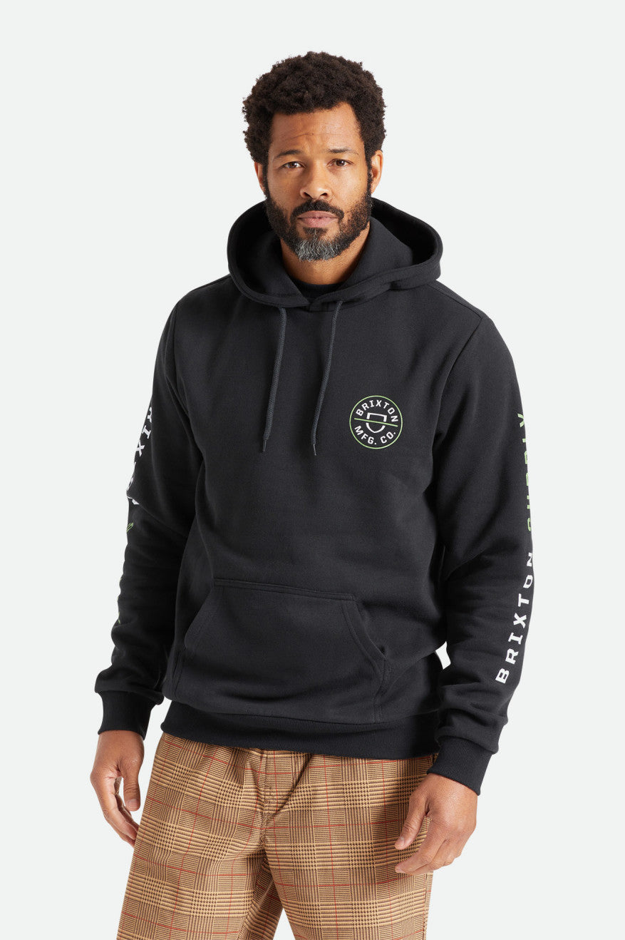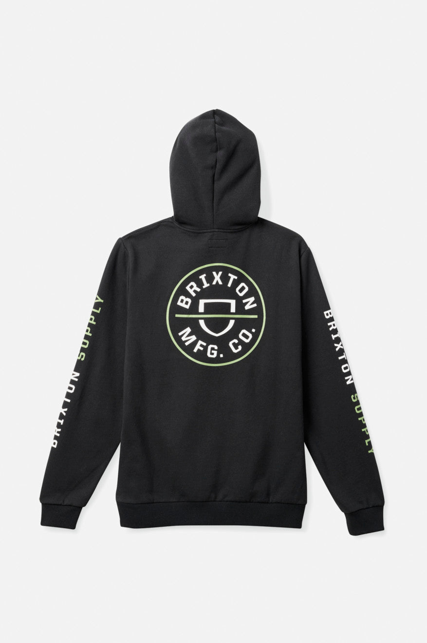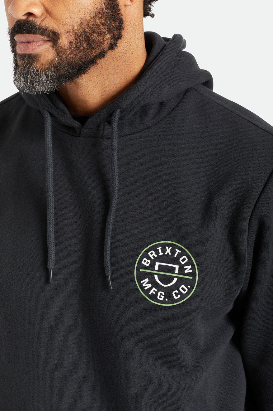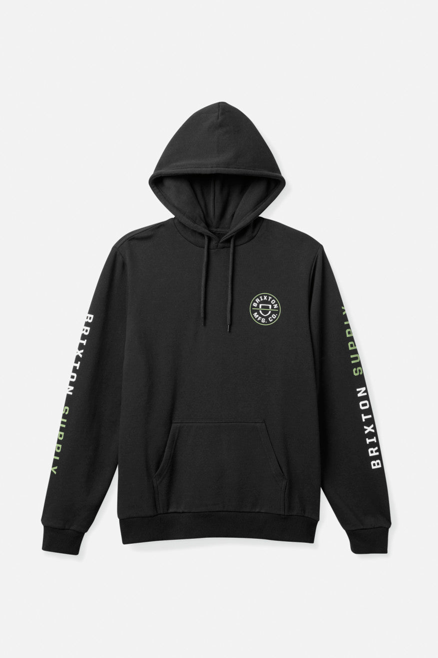The Crest Hood is a pullover sweater with iconic Brixton branding. It has a relaxed hood with drawcord adjusters and inset sleeves for mobility. Ideal for days off, days on and everyday in between.